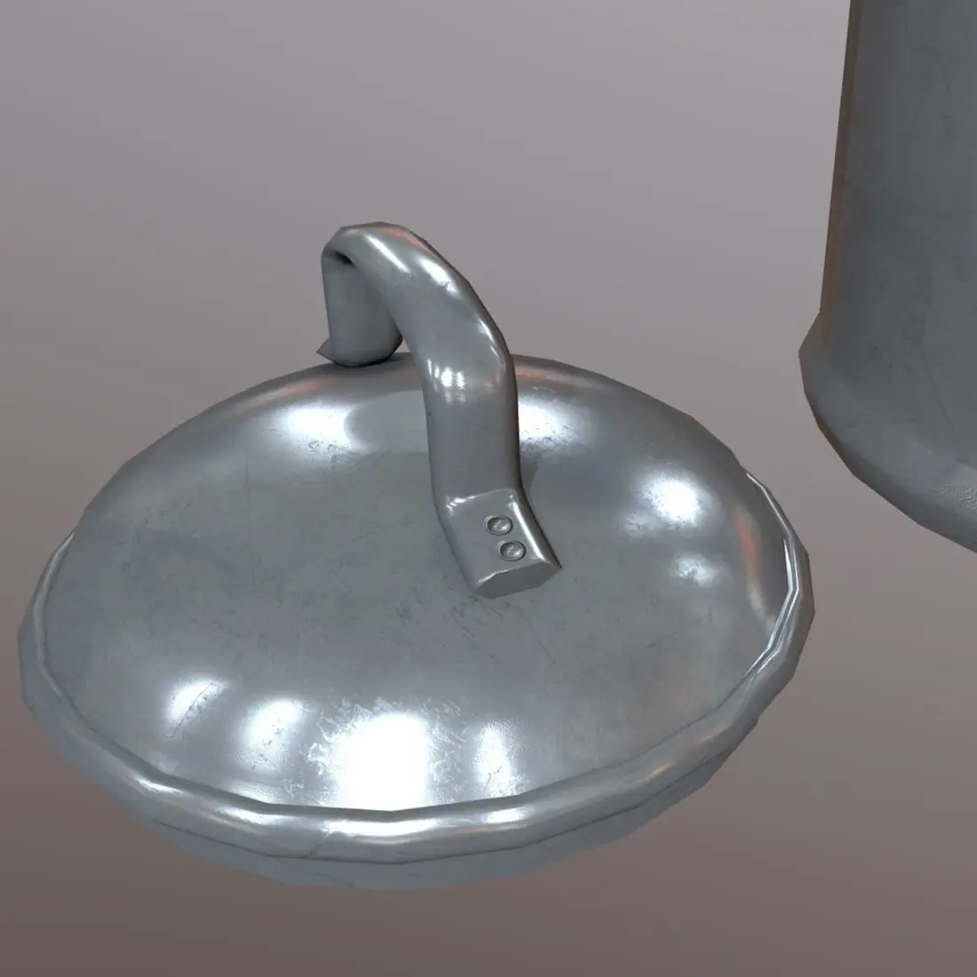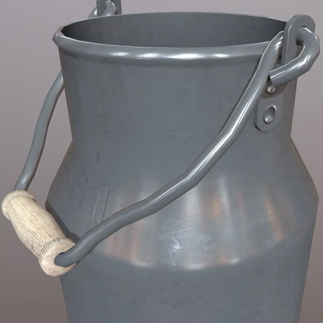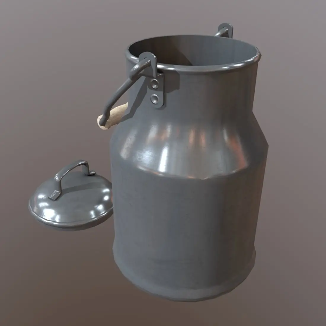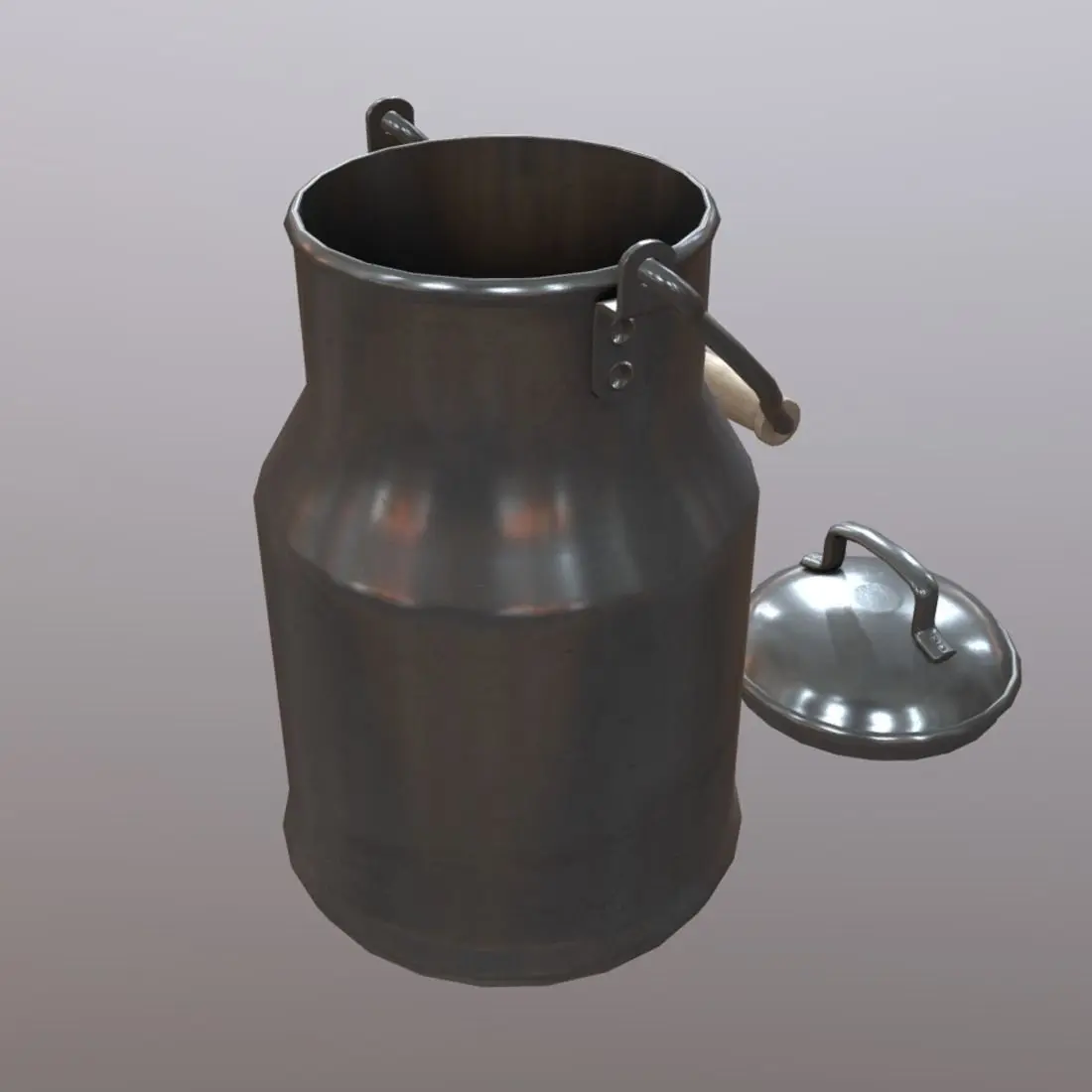 'It's a milk churn, or can! But it's empty, sorry!' The normal map is baked from the high poly model.