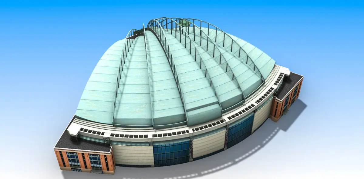 The roof of the stadium is provided in two models ,,Closed Roof style model'' and ,,Opened roof style model'' and will be imported separately to the main stadium model from the specific folder of each file format, acording to user preferences.