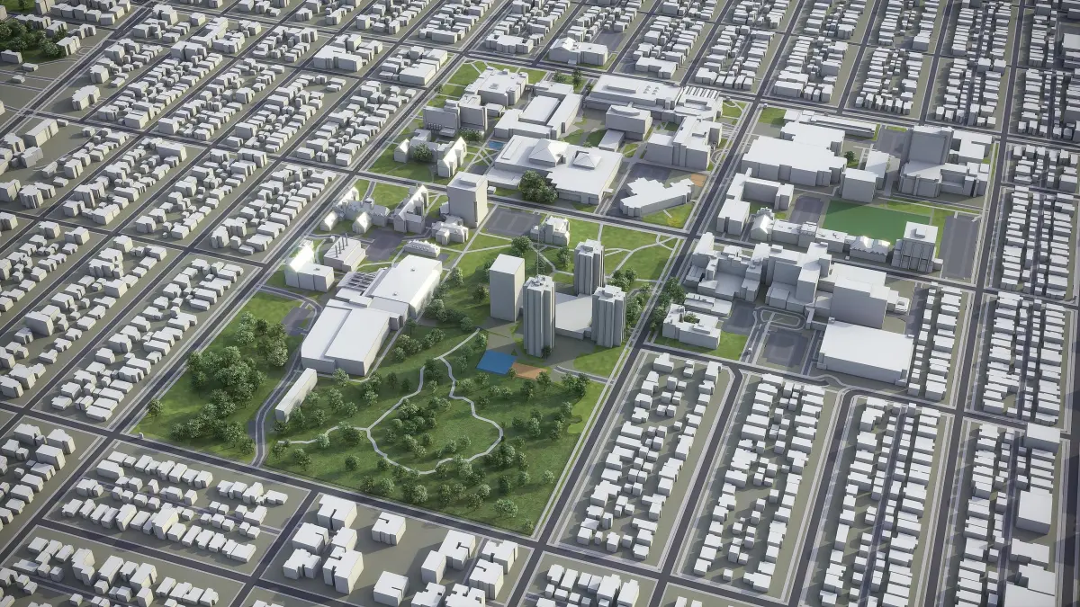 - Full city extents up to 100 x 100 km — or crop to an area of interest for better format compability and scene performance