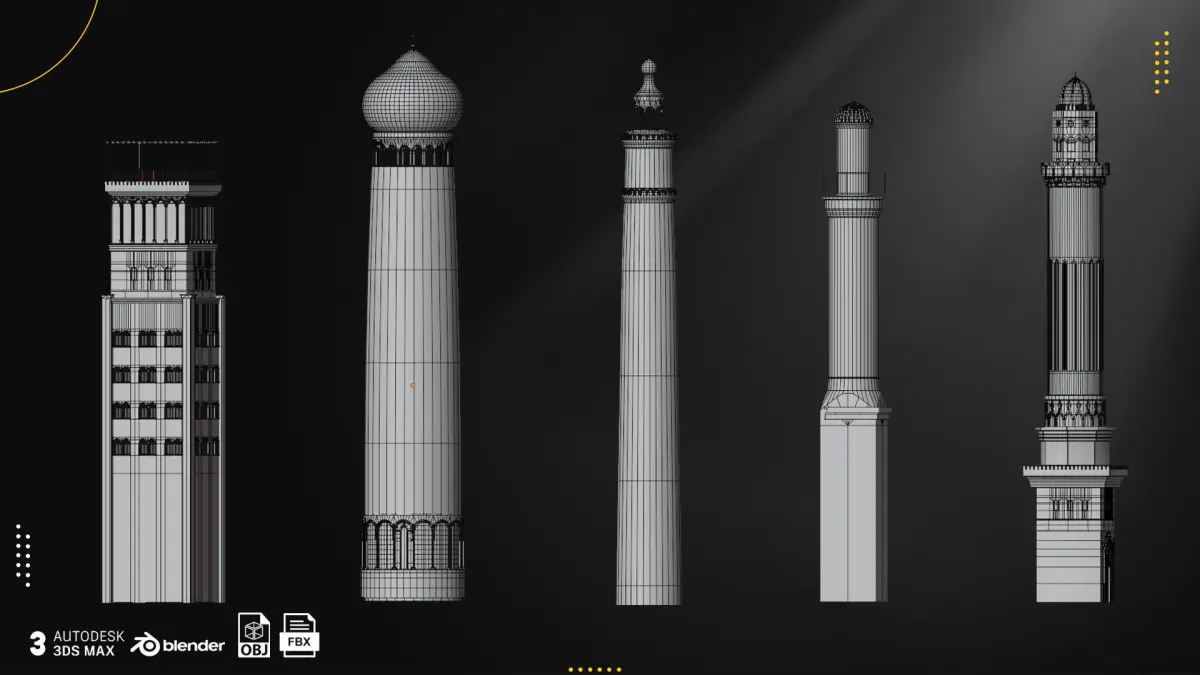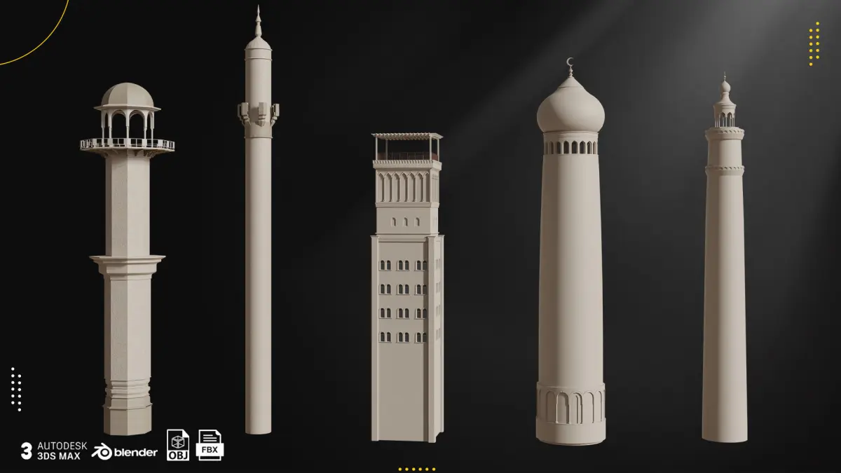 In this product, you will have 13 Minaret that you can use in various design, animation, game creation, visualization, etc.
