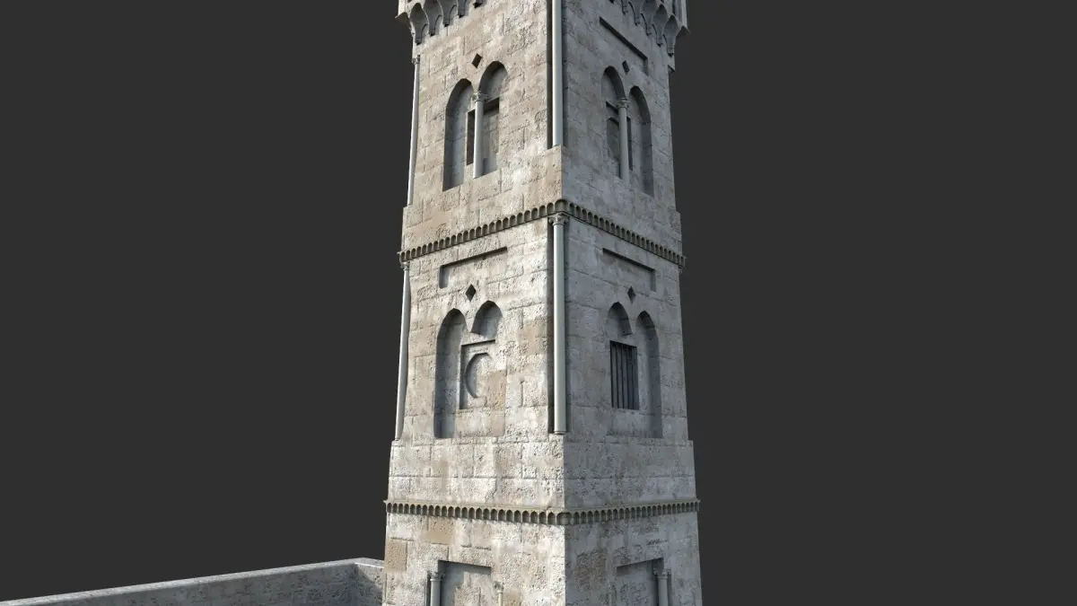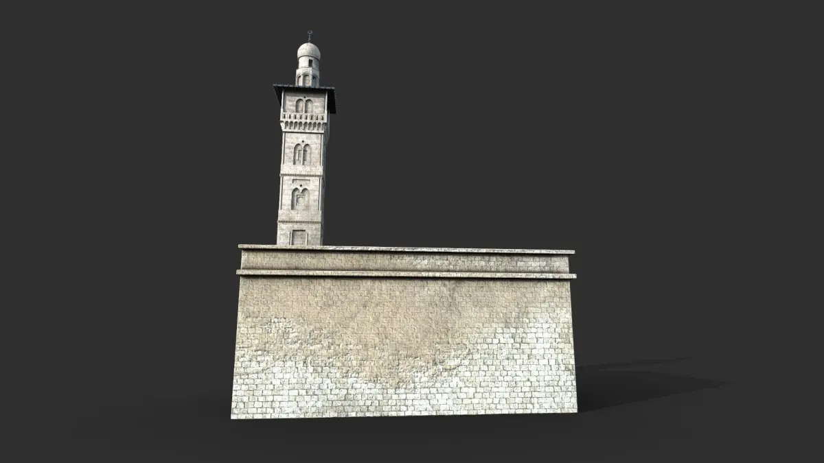 Al-Ghawanimah or Bani Ghanim MinaretAccording to travelers and early historians, Abd al-Malik bin Marwan built the al-Ghawanimah (Bani Ghanim) Minaret. Ibn Al-Faqih al-Hamadani (3-4 AH/9-10th century AD) in his Mukhtasar Kitab and Al-Buldan and Shihab Al-Din Ahmad Ibn Muhammad Ibn 'Abd Rabbihi (3-4 AH/9-10th century AD) in his Kitab Al-Iqd Al-Farid describe the pre-Crusader Al-Aqsa enclave as having four minarets.[7] One of them is known as the Ghawanima Minaret. It is also known as the Bani Ghanim Gate Minaret or Ghawanima Gate Minaret, the Qalawun Gate and Minaret of Saraya.[8] It is called the minaret of the Gate of Gwanimah because it is near to the door of Ghawanima (Bab al-Ghawanima).[8] It is named as the Minaret of the Saraya because it is located next to the Ottoman Saraya which is Al-Omariya School at the moment.[8] The reason for naming it the minaret of the Saraya is because the minaret was renewed in al-Mansur Qalawun’s reign.