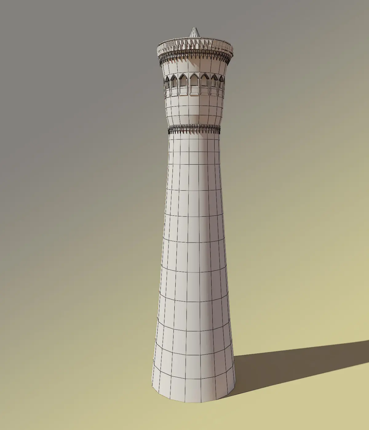 This is a low-poly game-ready 3D model of a minaret.