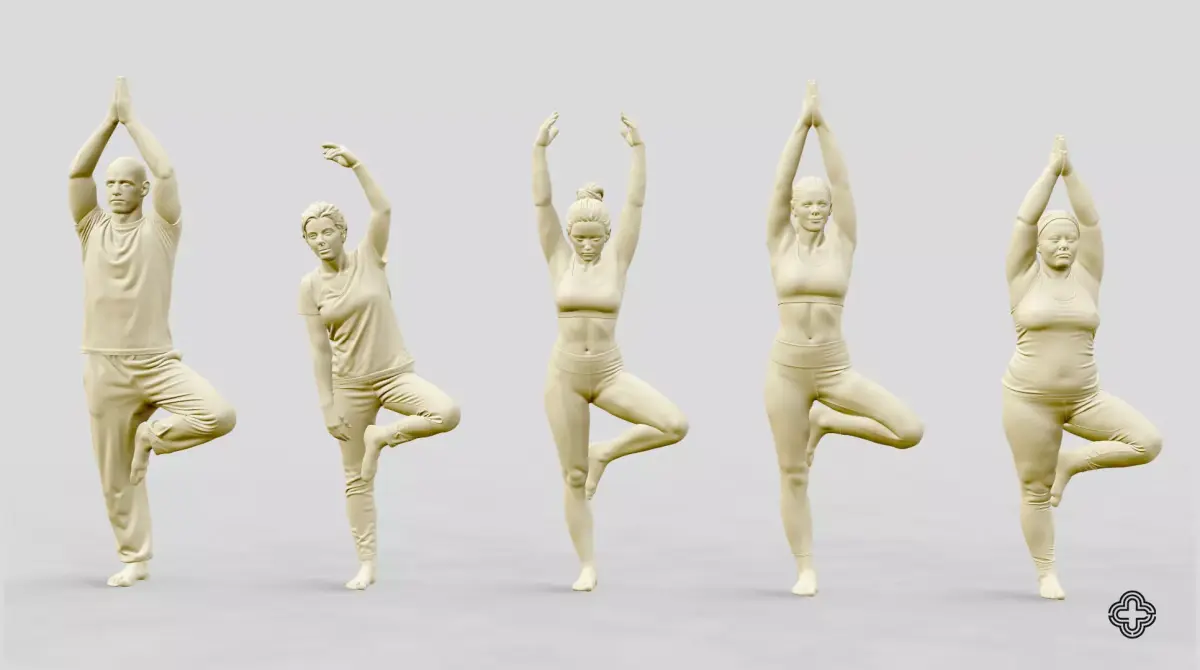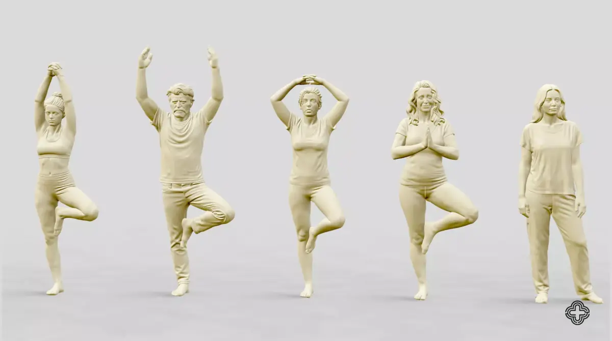 - 25 Unique Sculptures: A mix of standing, sitting, and floor poses (Yoga/Stretching).