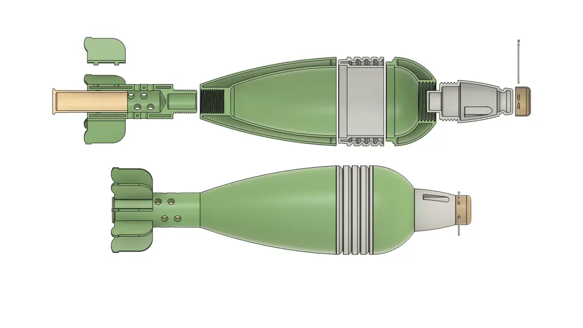 Training mortair mine 82 mm with M-6 detonator. Plastic weight 370 g. Учебная миномётная мина 82 мм со взрывателем М-6. Вес пластика 370 гр.