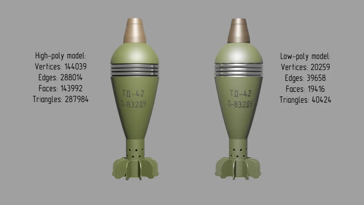 Mine 82 mm. The model is made in full size. The model is detailed. The archive contains high-poly, low-poly and 3d-print models. Suitable for use in game, visualazation, or 3D printing.