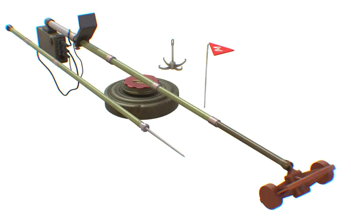 Mine Detector Set IMPS Mina TM-62 Dipstick Lowpoly 3d Model Low-poly 3D model