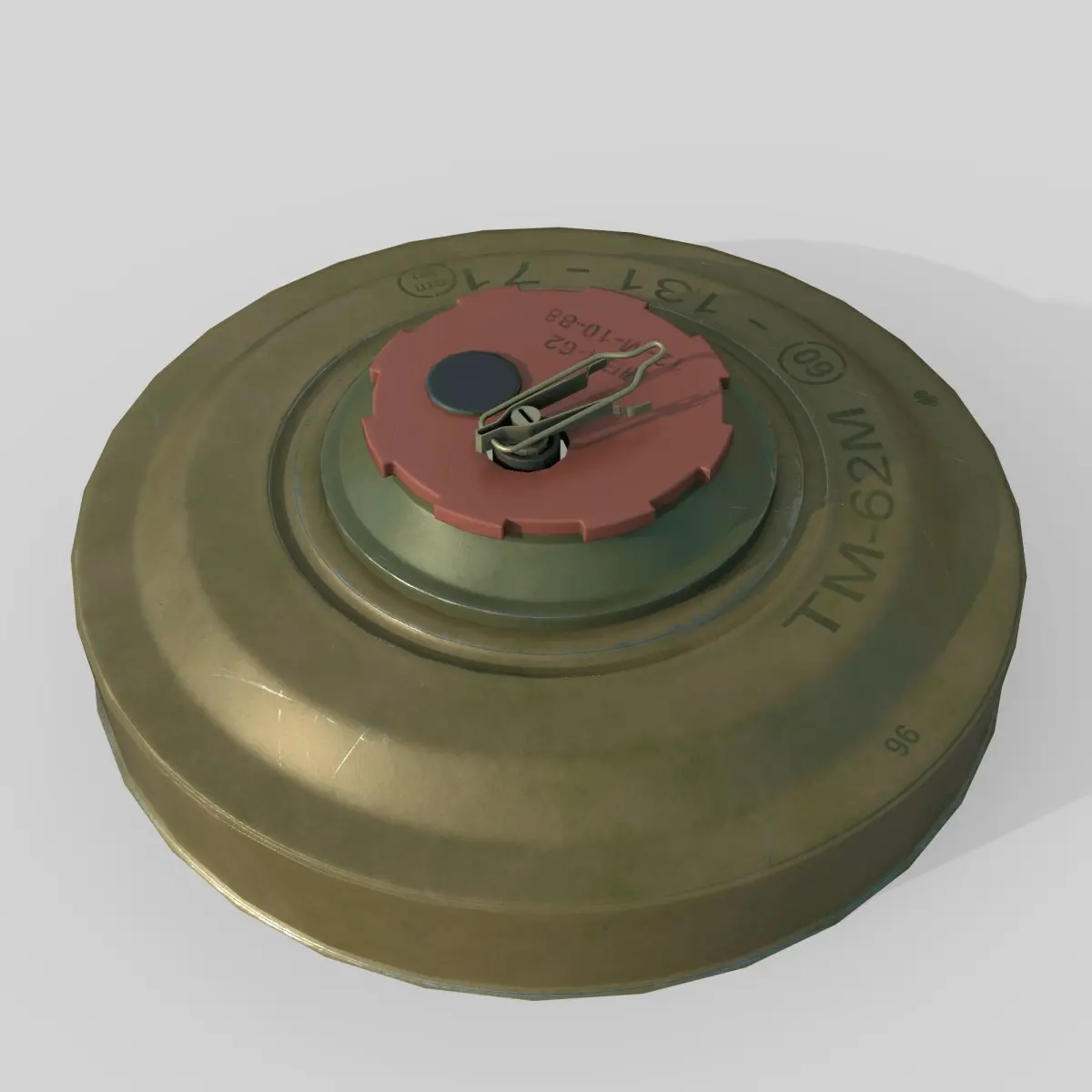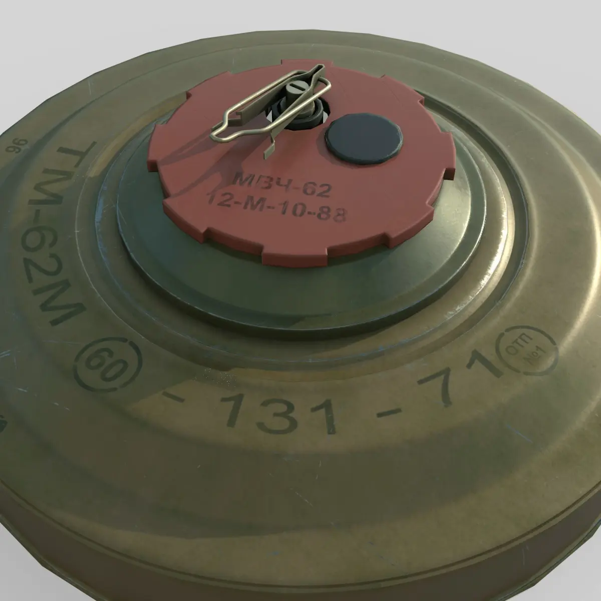 TM-62M - Soviet anti-tank mineLowPoly model(Game Ready)Created in Blender. Baked and painted in Substance painter.Render Iray. Mesh rendered Cycles. This model can be used for: game development, education, product presentation, personal projects and commercial projects.The archive contains a separate texture folders for Unreal Engine and Unity.