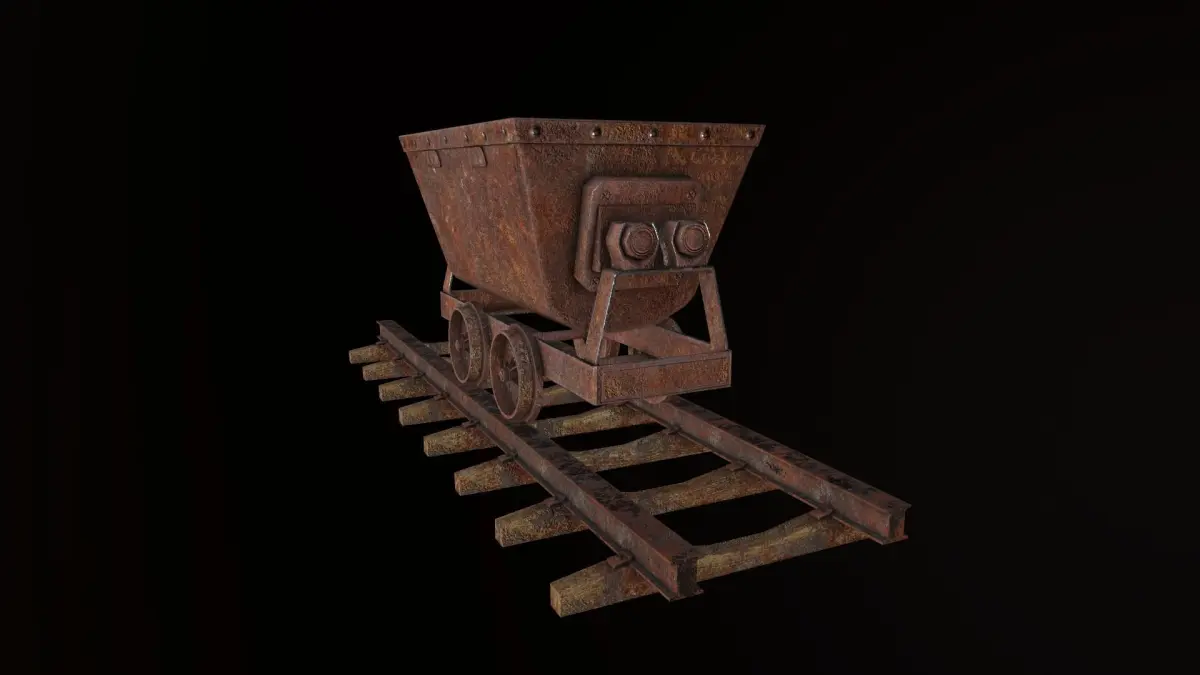 Low Poly Mine Wagon and Rails