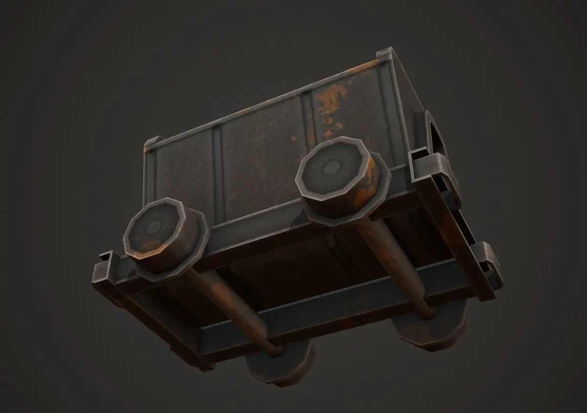 Low poly mine wagon 3d modelAll objects and textures named correctly Texture size 1024x1024 diffuse onlyOne mesh and one material Game readyMobile ready