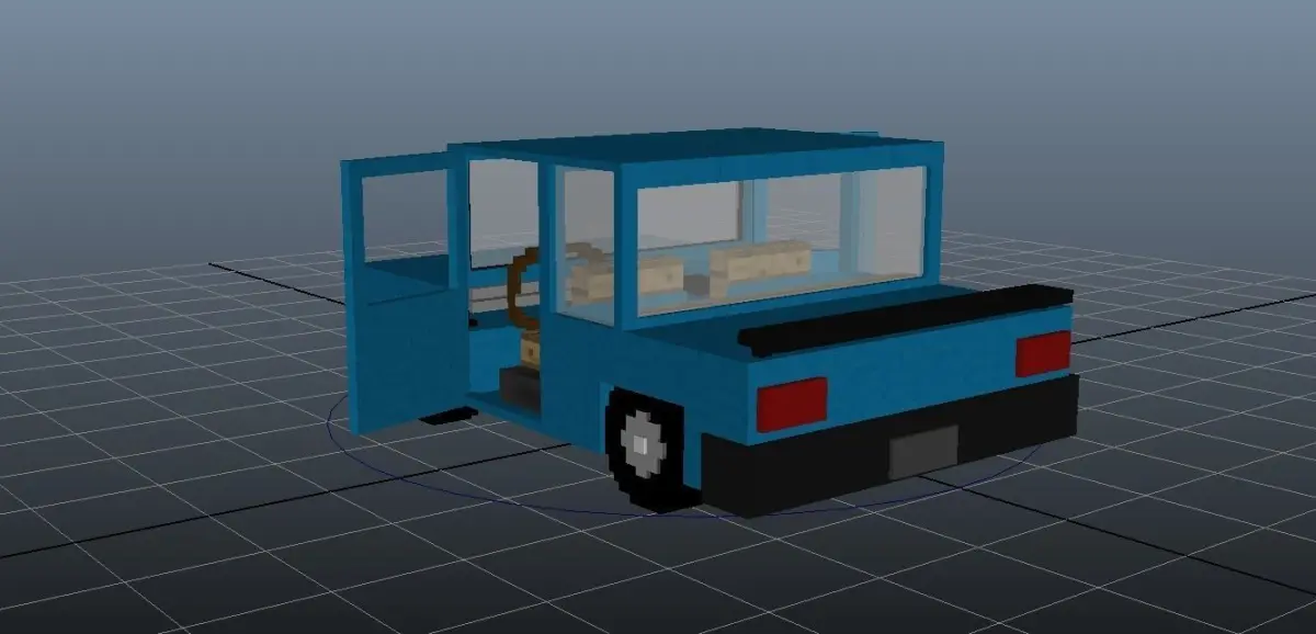 A Minecraft car for Maya (made in Maya 2013). Textured. You can open the doors, move the care, and rotate the wheels. You can edit the image of the care yourself to change the color of the car as well.