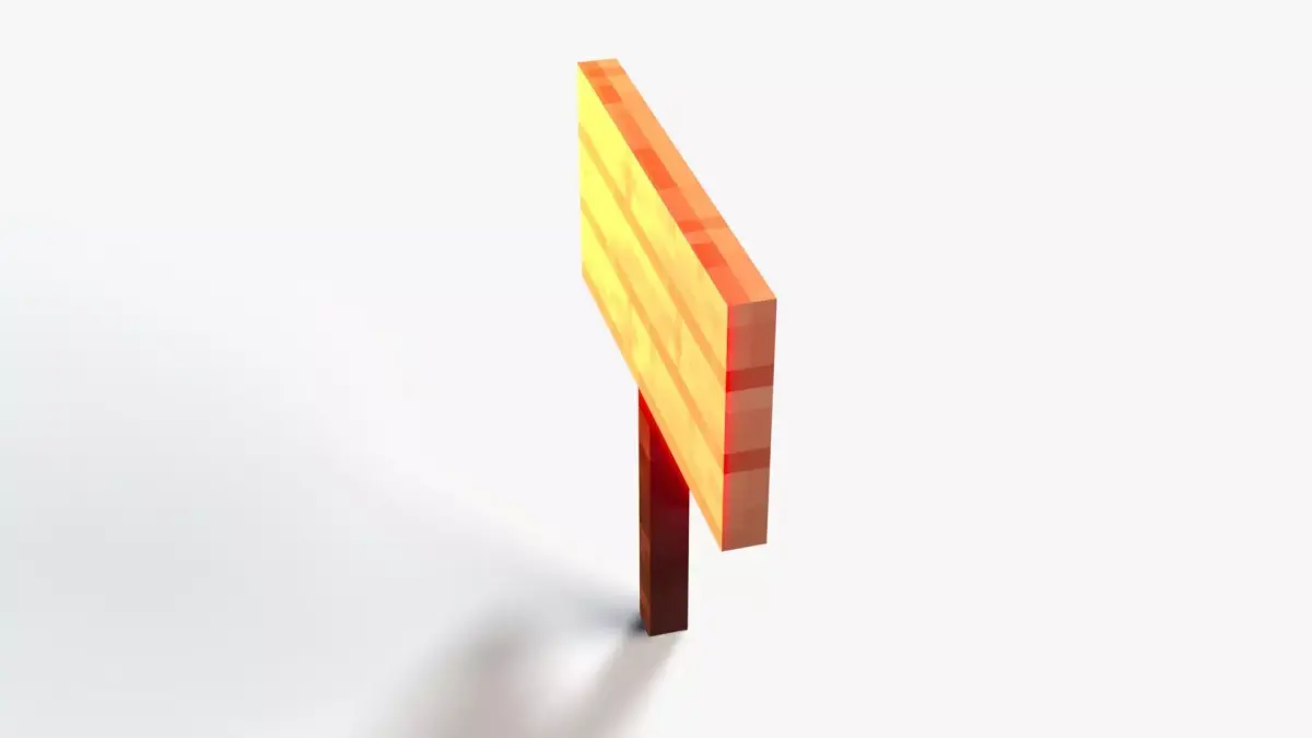 Versatile Minecraft-style sign rig designed in the classic blocky voxel aesthetic, featuring a built-in switch between the regular standing sign and the hanging sign variant. The rig is created exclusively for Autodesk Maya, with a clean joint setup that allows easy toggling, posing, and animation without duplicating geometry. The board, supports, and hanging elements are logically separated for clear control and smooth transitions.Textures follow a color-only (albedo) approach, consistent with the Minecraft style, and can be easily customized for different wood types or text designs. Geometry is optimized and lightweight, making the model ideal for animations, mods, stylized environments, or machinima scenes. When exported to FBX, only the joints and skin node are retained, while advanced rig controls remain Maya-only. Maya source files, along with FBX and OBJ formats, are included.