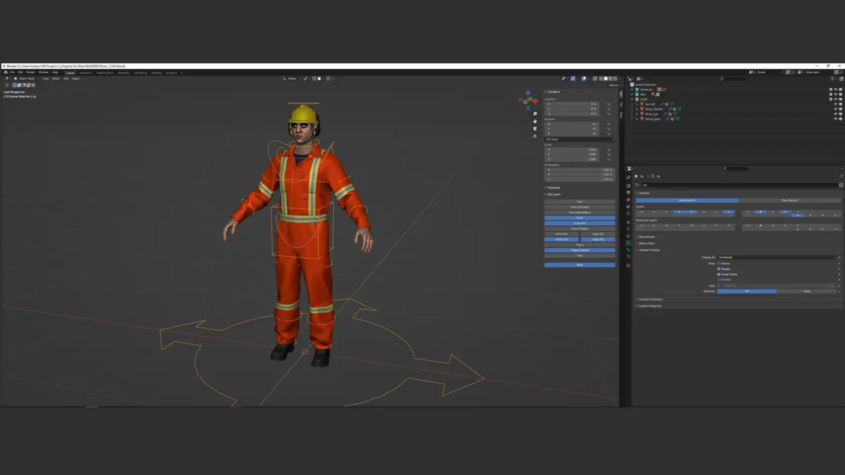 Realistic 3D model of Man - Miner/Worker - Modular - Rigged
