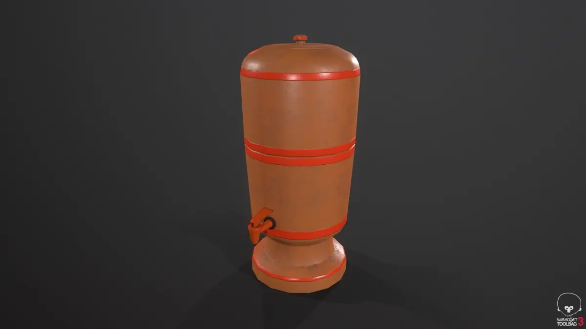 Mineral water filter: This model of high quality clay filter contains PBR textures and was made for use in games, but can also be used for other projects. All textures follow the workflow topology, optimized for use in real time.All textures are available in 2048x2048, in 8-bit PNG format.• PBR (BaseColor, Rougness, Metallic, Normal, AO, Glossiness).• Unreal Engine 4 (BaseColor, OcclusionRoughnessMetallic, Normal).• Unit 5 (AlbedoTransparency, AO, MetallicSmoothness, Normal).Blender and Substancepainter files, rendered in Marmoset and Unreal. / 3,254 tris