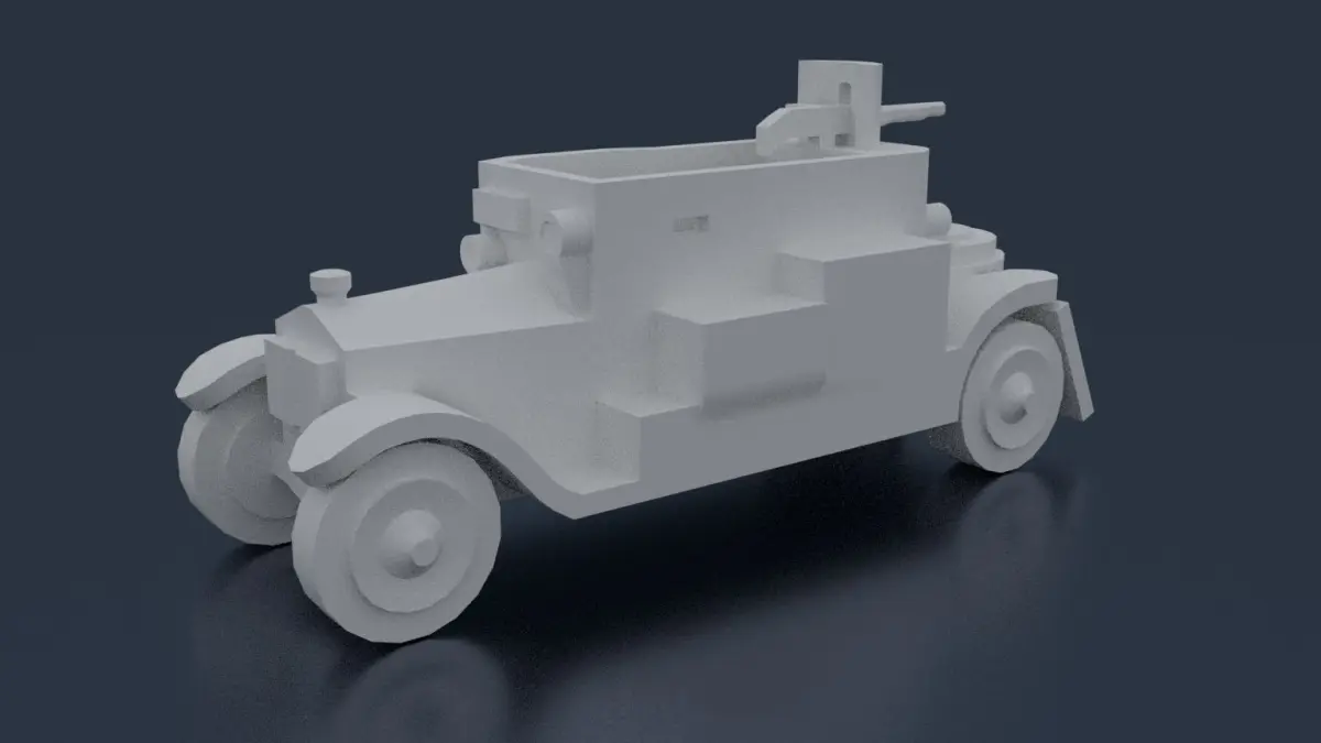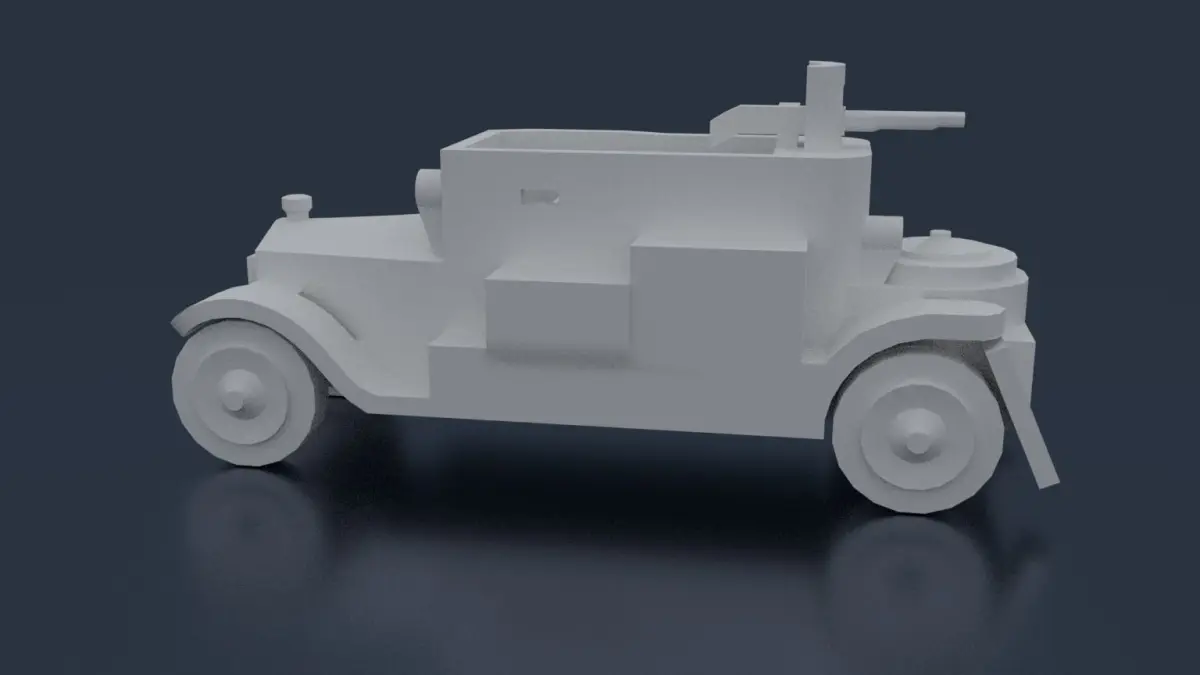 By 1912, the Belgian Army was already pioneering small patrol units of regular road cars equipped with machine guns. In August 1914 two car chassis were handed over to Lt. Charles Henkart to be armored and then returned to the Belgian Army. The most well known of these vehicles was the Minerva, built at Antwerp. The sturdy and powerful Minerva 16CV chassis was shipped “naked” (without bodywork) to Cockerill works in Hoboken. There it was equipped with 4 mm (0.16 in) thick armor plates.