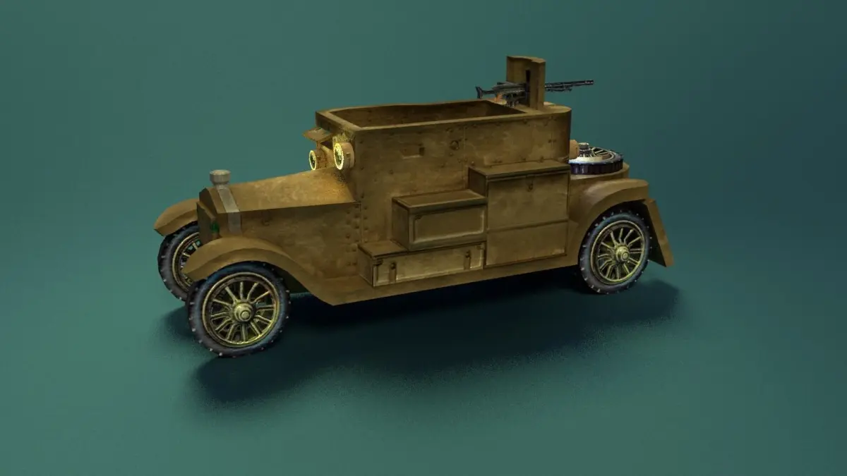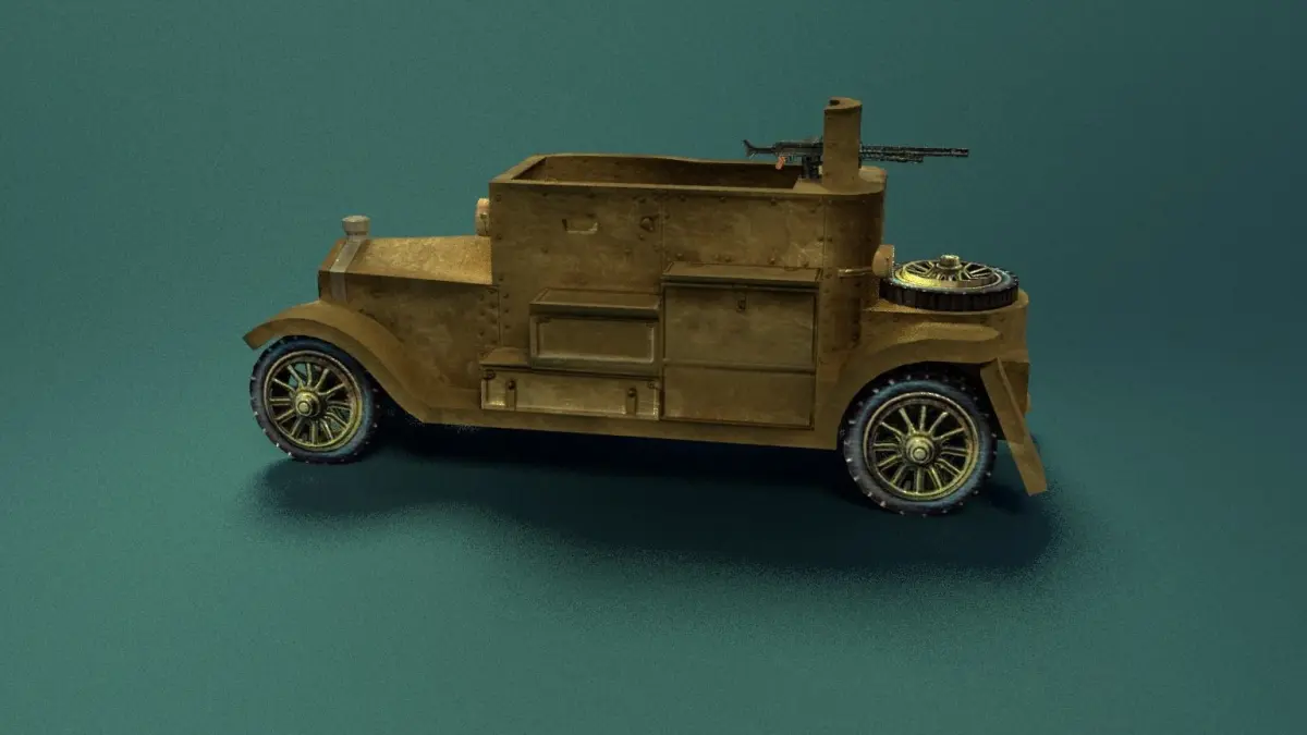 By 1912, the Belgian Army was already pioneering small patrol units of regular road cars equipped with machine guns. In August 1914 two car chassis were handed over to Lt. Charles Henkart to be armored and then returned to the Belgian Army. The most well known of these vehicles was the Minerva, built at Antwerp. The sturdy and powerful Minerva 16CV chassis was shipped “naked” (without bodywork) to Cockerill works in Hoboken. There it was equipped with 4 mm (0.16 in) thick armor plates.
