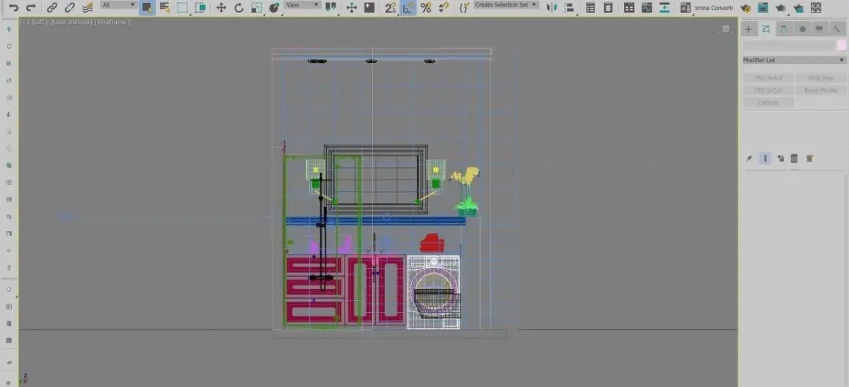 High quality bathroom includes all you see on the picture (accessories, miror, washing machine, shower , cabinets, tiles and so on)! Cameras are ready for rendering. 3dsMax and Corona 2.