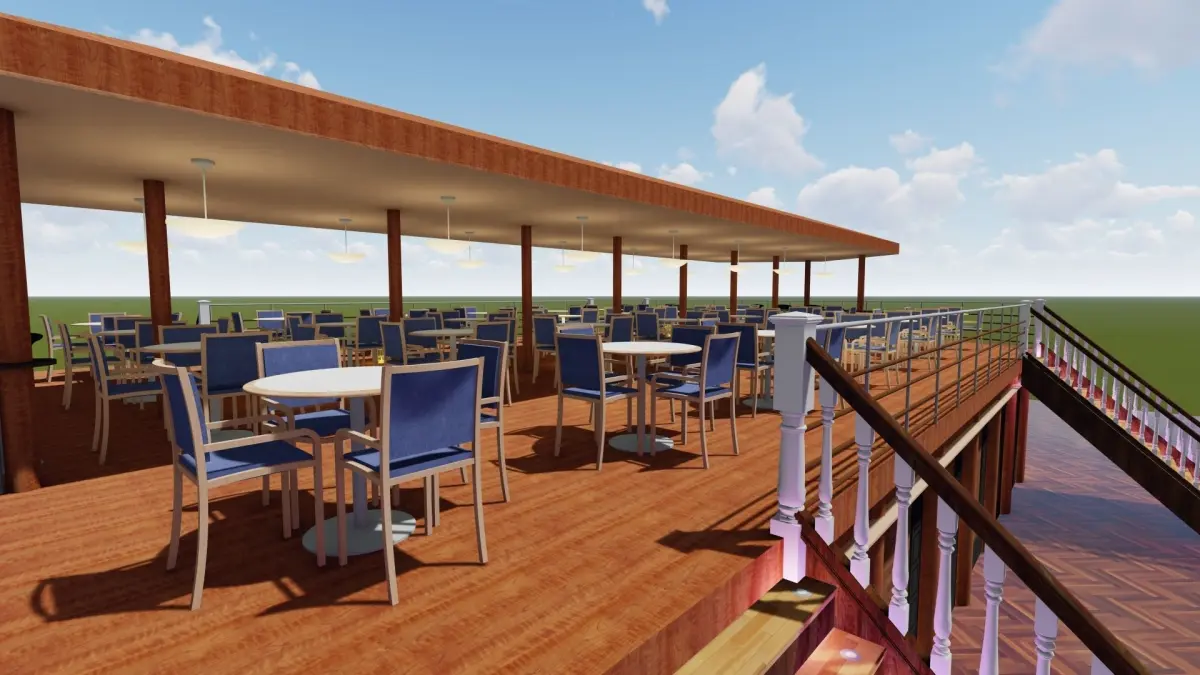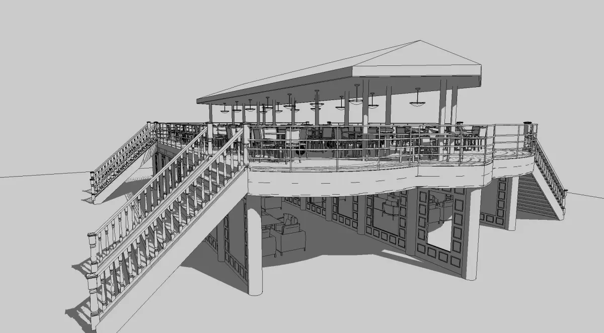 Mini cafe top deck below deck-Wooden concept 3D model