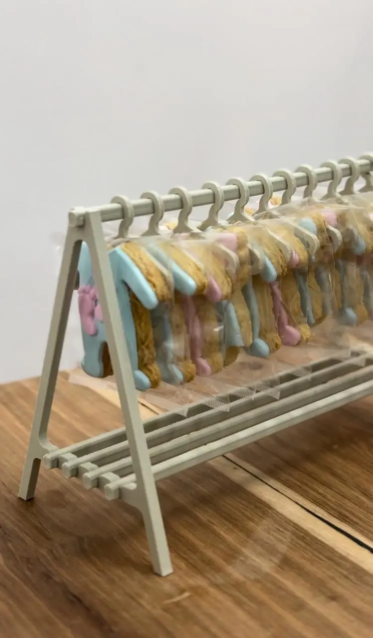 once again, done with love! Mini hanger or wardrobe for cookies in the shape of clothes. it comes with 3 cookie cutters as well! Super unique for a decoration like baby showers!