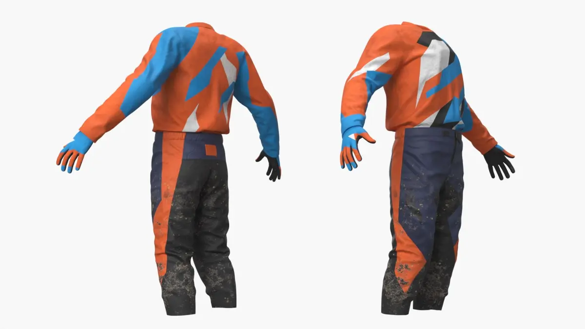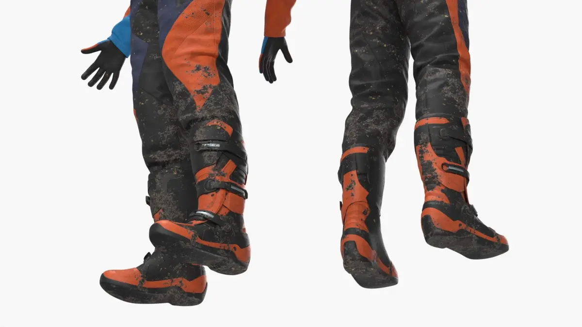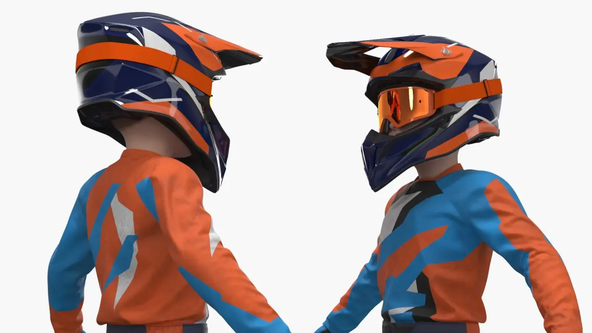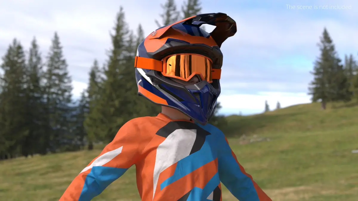Mini Cross Child Rider Muddy Orange is a three-dimensional model of young motocross racer wearing junior motor sport outfit for children (kid's motocross gear set).