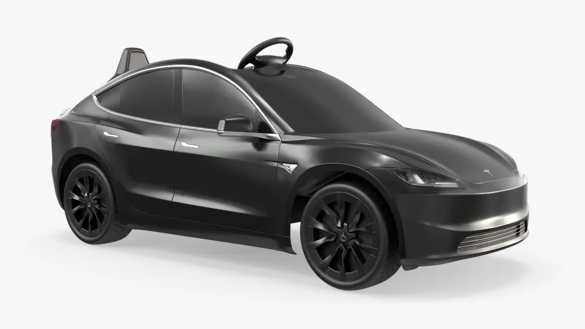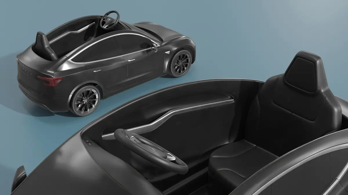 Mini Electric Sports Car for Kids Black is a three-dimensional model of kids’ miniature, ride-on, Tesla Model S - inspired, electric battery car, that designed to provide a high-end driving experience for children.