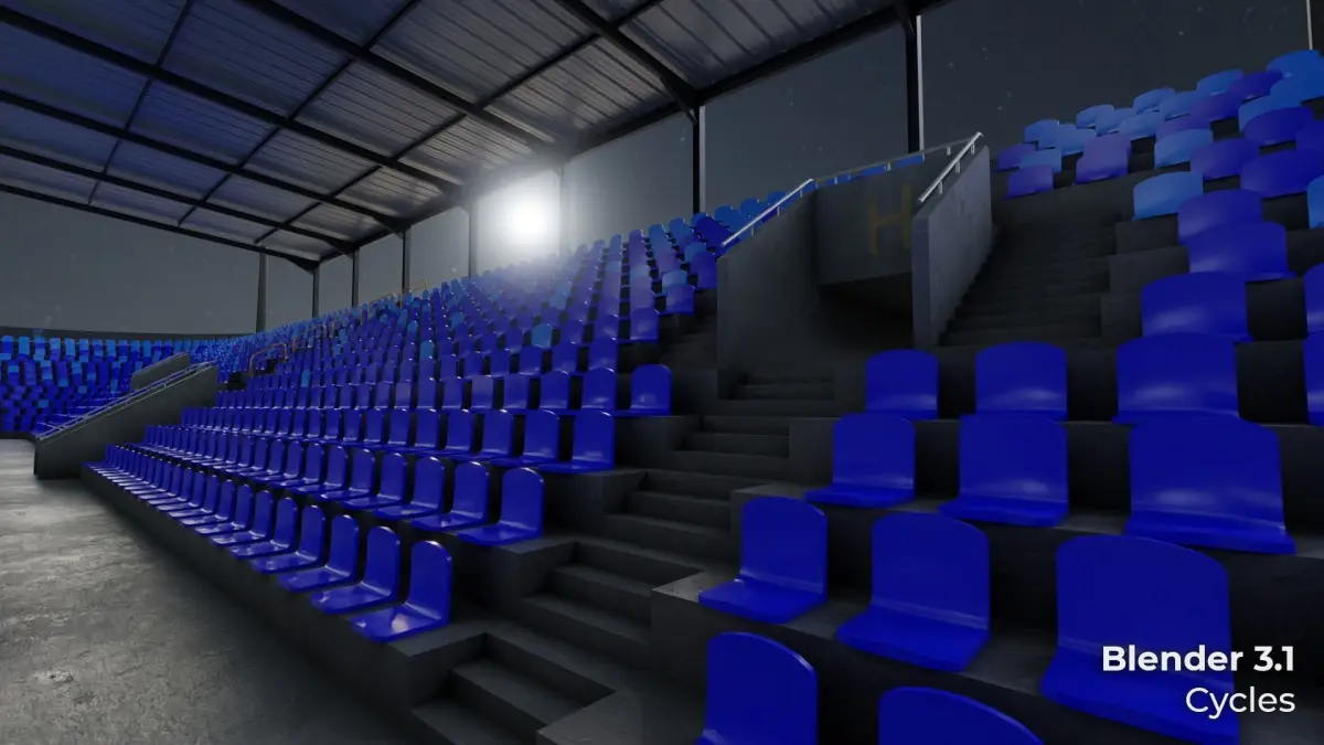 - Vertices: 98.900 / Tris: 191.190 (Without seats), Vertices: 777.900 / Tris: 1.535.190 (With seats).