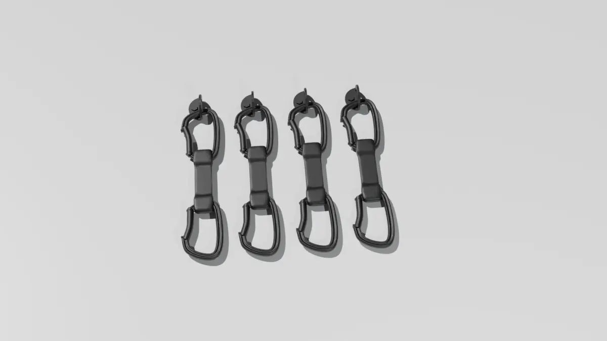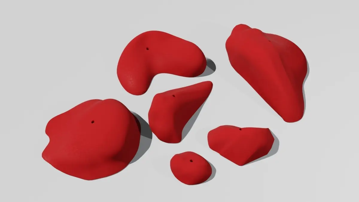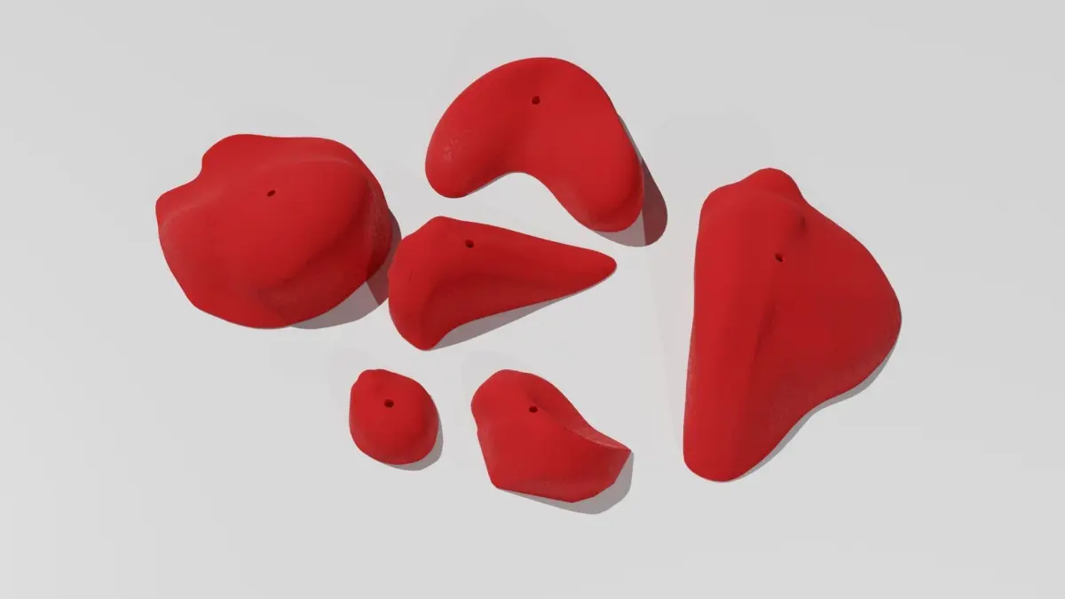 In this file, you'll find models of indoor gym-quality epoxy rock climb holds, and a set of climbing draws hanging on a bolt. These are not your kid wall plastic holds that you'll find in other files. These are modeled after real professional climbing holds, like those found in professional climbing leagues and competitions. The files are intended for printing, and to be used in modeling, or architectural models.