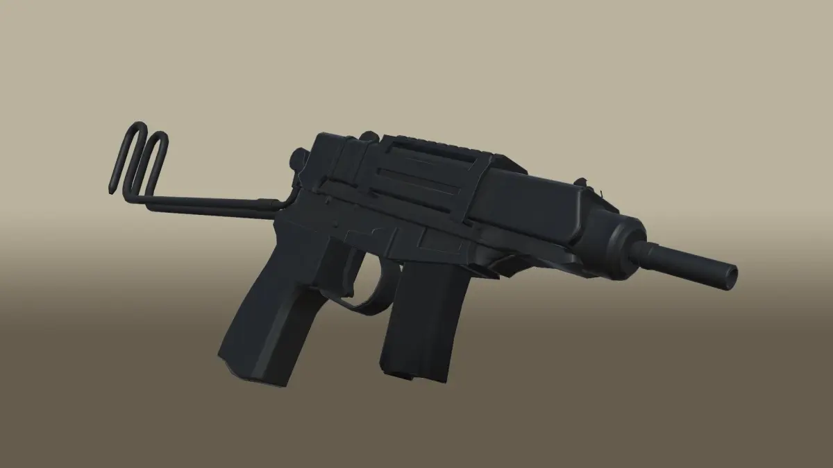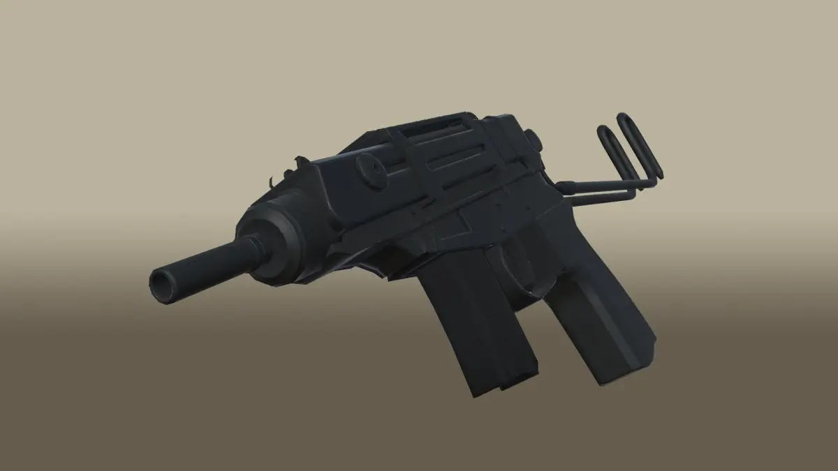 Here's a sleek gun that's a must-have for those modern battlefields! This mini machine pistol is easy to conseal with mercenaires perfering a mid should mount.