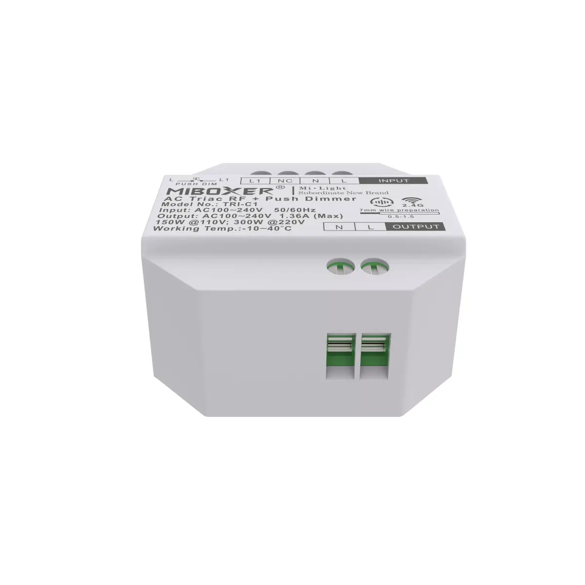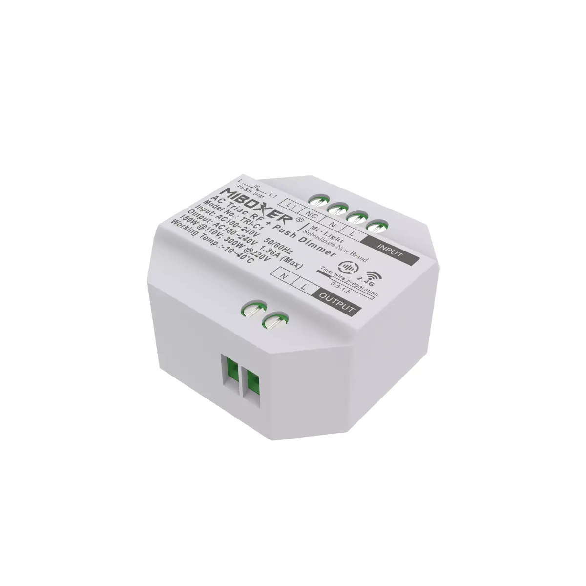This is a highly detailed and realistic 3D model of a compact smart WiFi switch relay module, commonly used for DIY smart home automation systems. The device features a clean plastic housing with screw terminals for live, neutral, input, and output connections, making it perfect for electrical control setups and IoT-based smart installations.