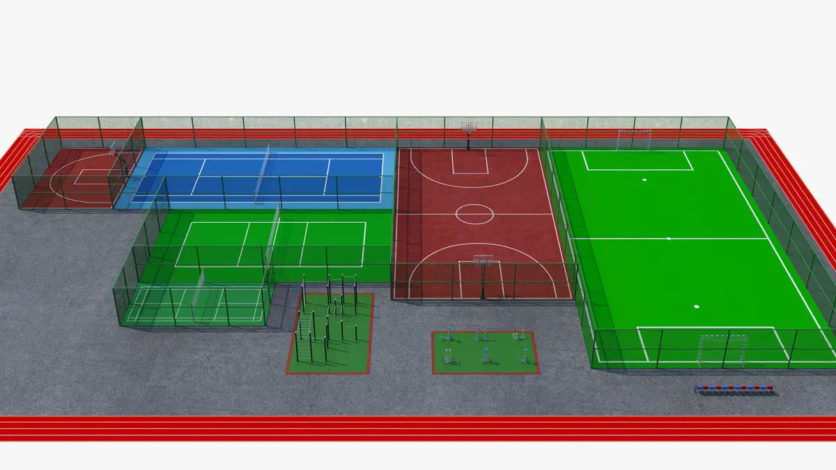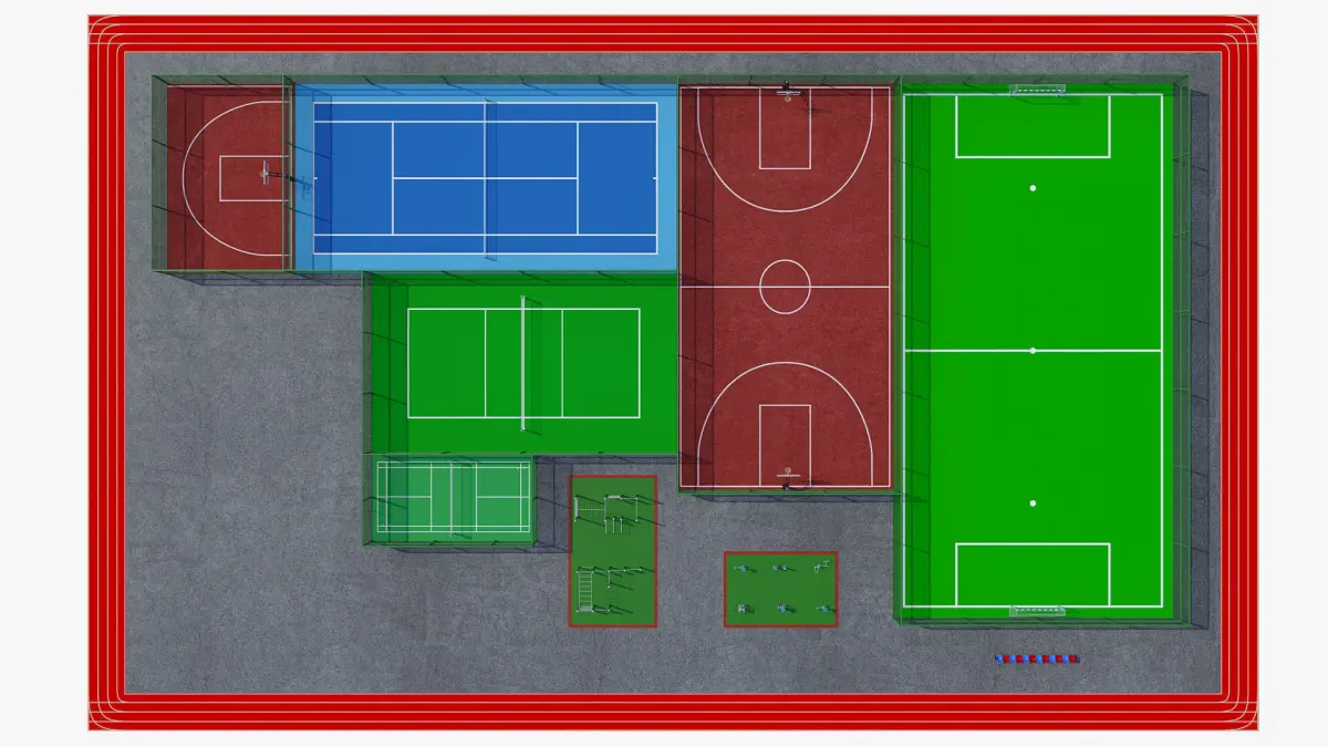 Dimensions of the basketball stadium: 1700x3200 cm