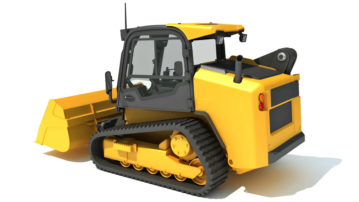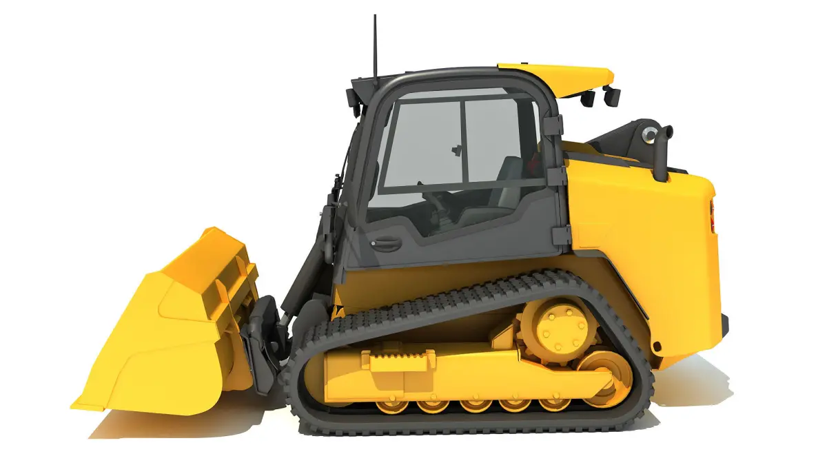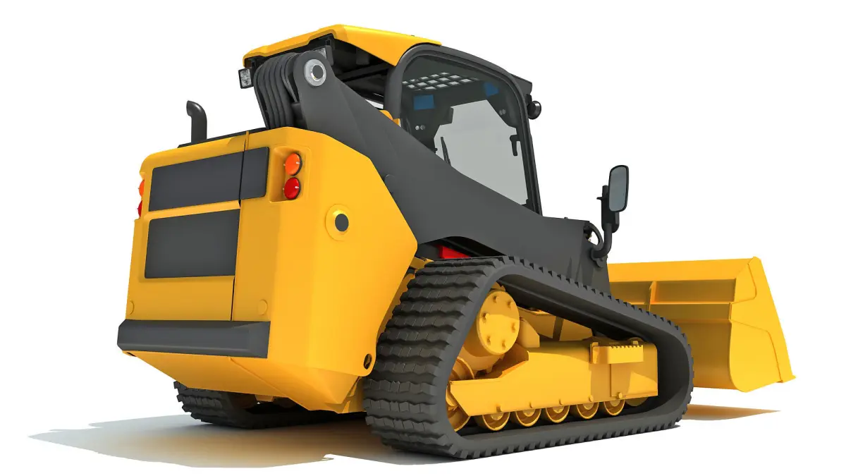 High quality 3d model of mini tracked skid steer loader with shovel bucket.