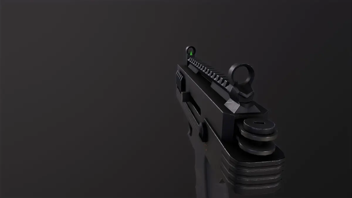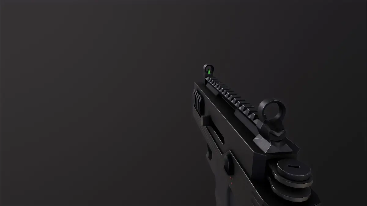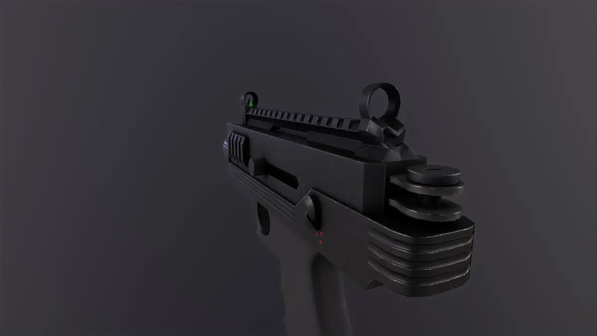 3d model of a mini uzi handheld submachine gun, optimized low poly mesh suitable for game engines. PBR textures
