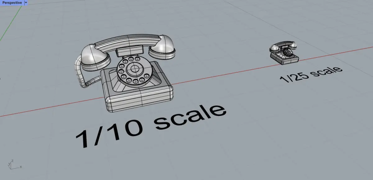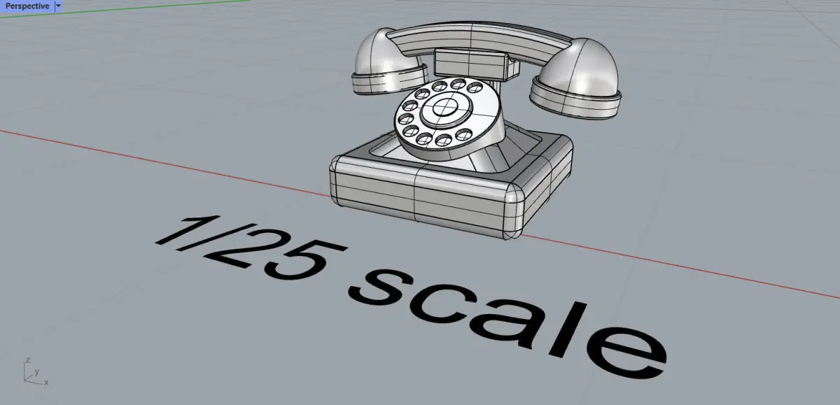 Here is the miniature 3D model of classic phone for model making. I made it in two scales - 1-10 and 1-25. The dimensions for 10th scale are 23,9 mm x 17,5 mm x 12,9 m and the dimensions for 25th are 9 mm x 6 mm x 5,2 mm (For 1-25 scale I removed the cable due to size). The model was made in Rhinoceros