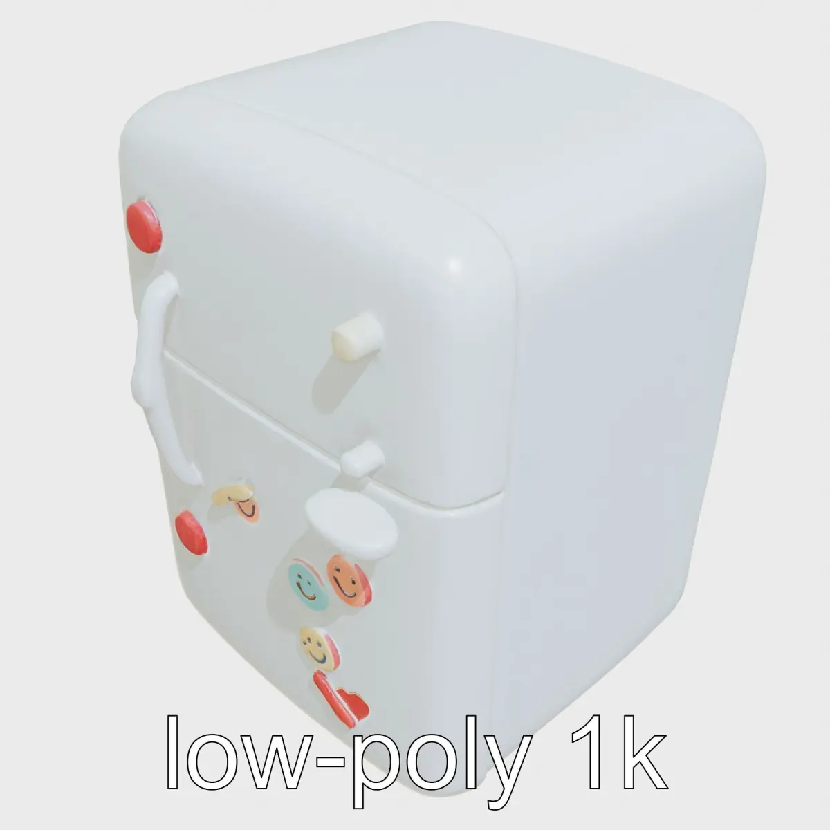 This 3D model features a playful miniature fridge design, accentuated by soft, smooth curves and decorated with cheerful plastiline details. It includes three levels of detail: low-poly, mid-poly, and high-poly, making it versatile for various applications in production rendering (such as 3ds Max, Maya, Cinema 4D, Blender, Vray/Corona/Cycles), game engines (Unity and Unreal compatible), and interactive presentations, allowing customization based on the LOD System principle.