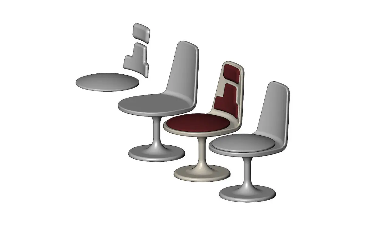 Miniature round plastic chair mockup prop for 3d printing.