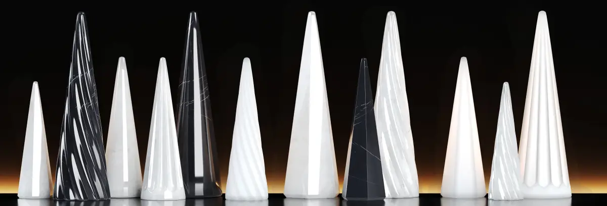 - Marble cone tree ornaments made by CB2