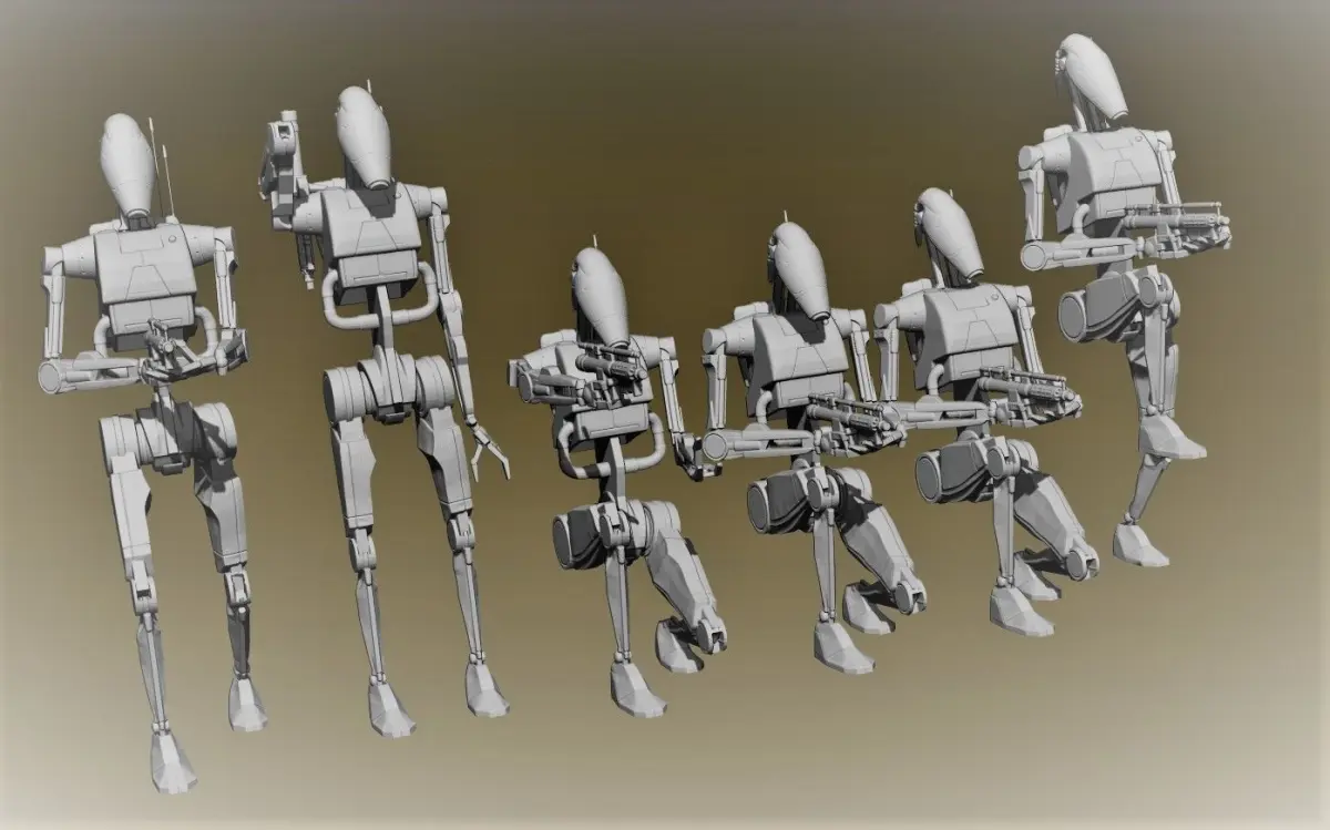 Battle droids, also known as battle droids, clankers, droid soldiers, or battle robots, were a type of droid designed for combat. Over the years, various factions in the galaxy used many different models of battle droids. One such faction was the Confederacy of Independent Systems, which used several different models of battle droids during the Clone Wars to form the Separatist Droid Army. Under the command of General Grievous, various models of battle droids fought the Galactic Republic's clone troopers until the last days of the war, when the Confederate battle droids were deactivated by the Galactic Empire.