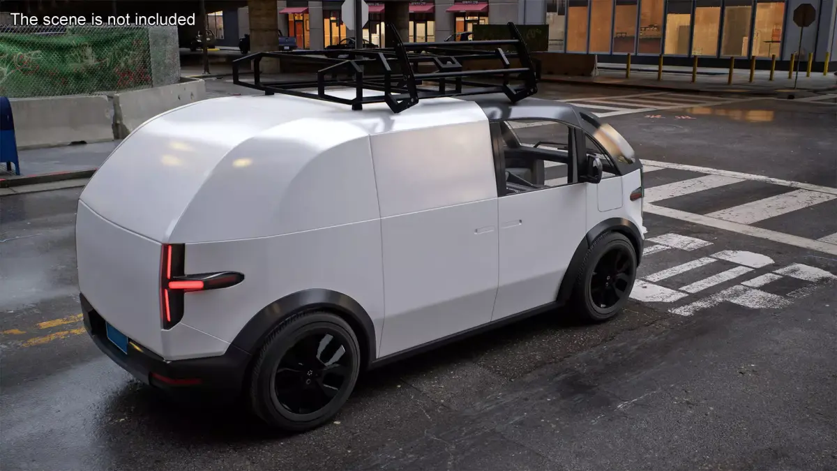 Minibus Electric White Rigged for Maya is a three-dimensional model of electrical delivery vehicle which is an electric type van, minivan or minibus, and which is designed to transport of various freight, loads, goods, cargo, etc..