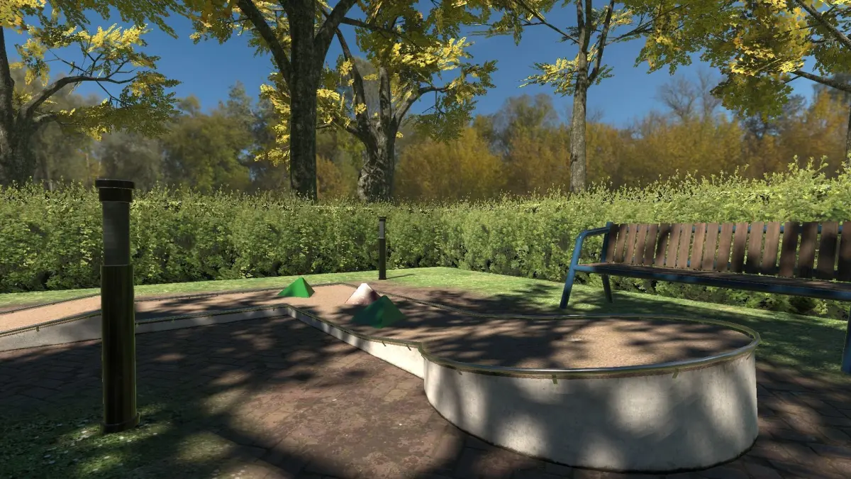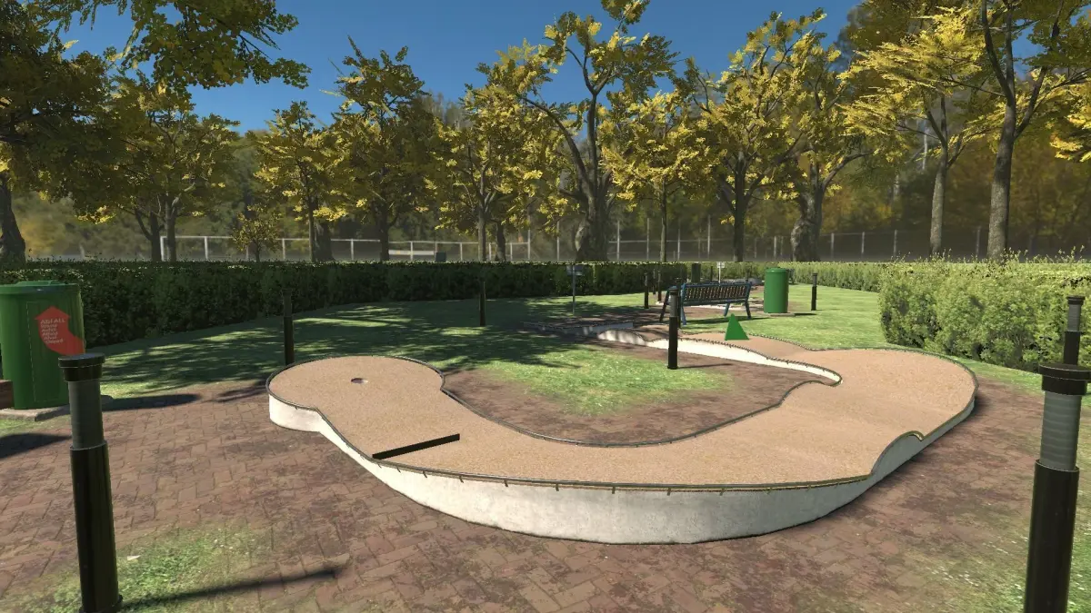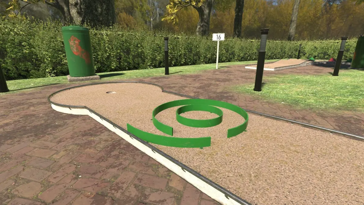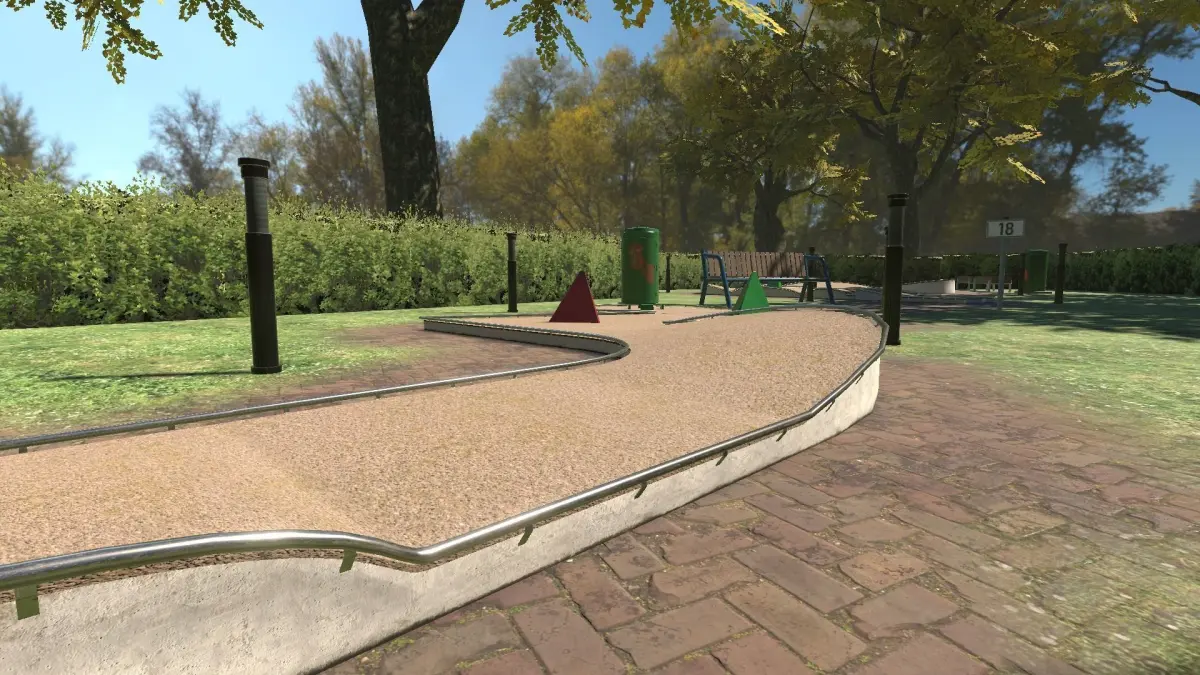 Contains a modular set for build various minigolf courses.Also contains several props for decoration the enviroment around like benches, trashcans, lamps, trees, hedges and more.