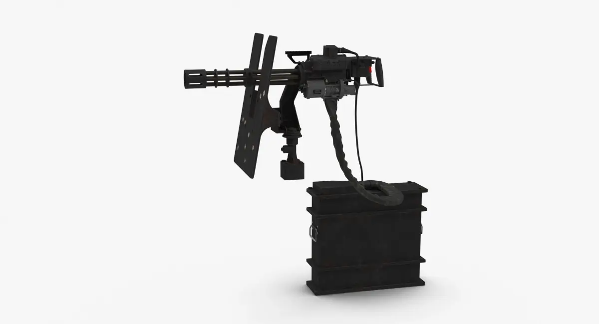 This Minigun M134 Dirt is a high quality, photo real model that will enhance detail and realism to any of your rendering projects. File units - cm. The model has a fully textured, detailed design that allows for close-up renders, and was originally modeled in 3ds Max 2014 and rendered with V-Ray.