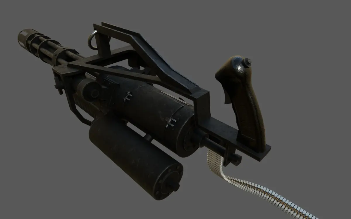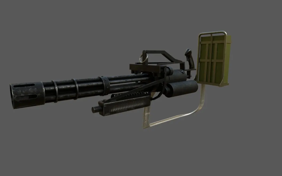 This is a 3d model of a m134 Gatling gun. It is a 6 barreled weapon system capable of firing 6000 7.62 mm rounds per minute.MINIGUN M134 with ammunition backpack and hand grip.