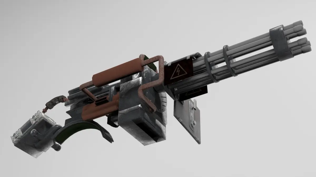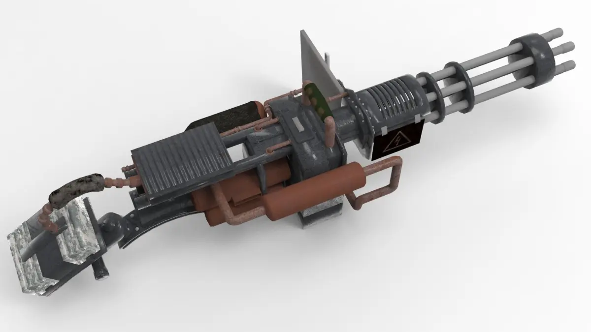 The basic minigun is a six-barrel, air-cooled, and electrically driven rotary machine gun. The electric drive rotates the weapon within its housing, with a rotating firing pin assembly and rotary chamber The minigun's multi-barrel design does not prevent overheating, but also serves other functions. Multiple barrels allow for a greater capacity for a high firing rate, since the serial process of firing / extraction / loading is taking place in all barrels simultaneously. Thus, as one barrel fires, two others are in different stages of shell extraction and another three are being loaded. The minigun is composed of multiple closed-bolt rifle barrels arranged in a circular housing. The barrels are rotated by an external power source, usually electric, pneumatic, or hydraulic. Pressure, pressure, energy