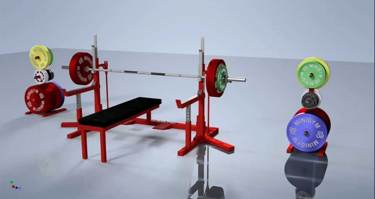 A scale model of a Powerlifting combination rack as typically used in competitions.