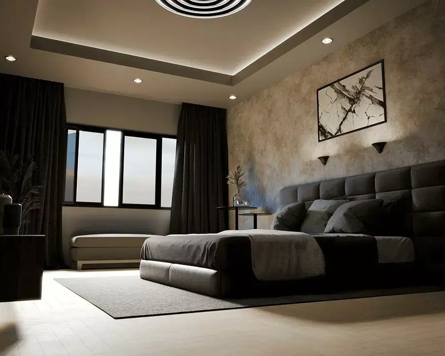 Description:This 3D scene features a modern luxury bedroom interior designed with high-quality furniture, lighting, and decor elements. The setup emphasizes comfort and elegance through premium materials, realistic lighting, and carefully crafted details. Ideal for architectural visualization, interior design presentations, VR/AR experiences, and high-end rendering projects.