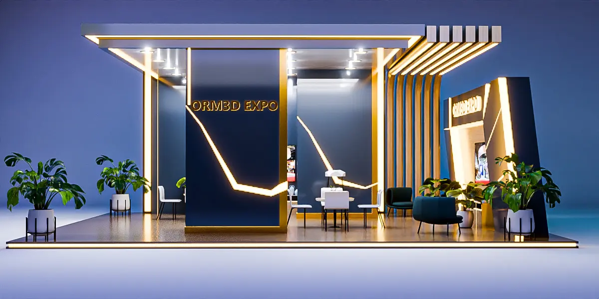 A clean, minimal, and modern 3D expo booth design ideal for exhibitions, business expos, and branding showcases.