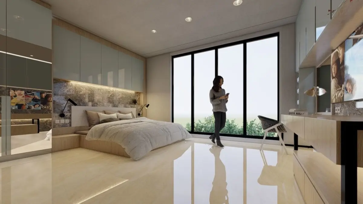 Scandinavian interior viewThis is a fully textured Master bedroom interior scene with natural light installations.