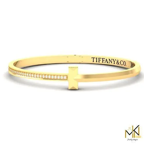 A sleek and elegant gold bangle bracelet featuring a clean, geometric “T” shaped clasp design and a line of pavé-set diamonds. Designed in a modern minimalist style, this 3D model is perfect for fine jewelry prototyping, product visualization, and 3D printing.
