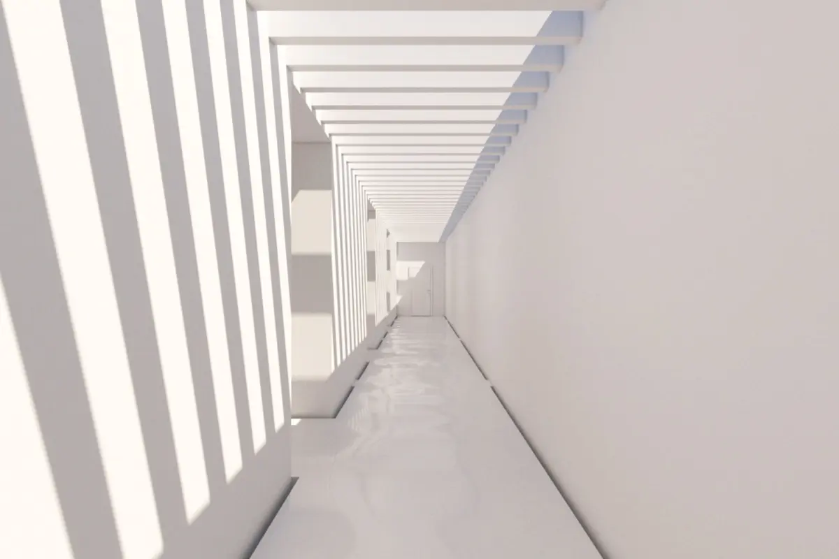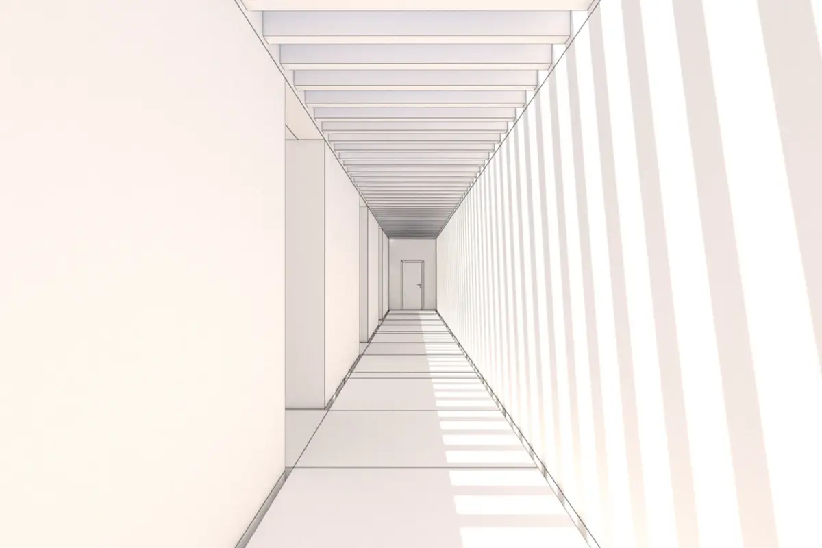 A DETAILED 3D MODEL OF A MINIMALIST ENTRANCE HALLWAY / CORRIDOR: