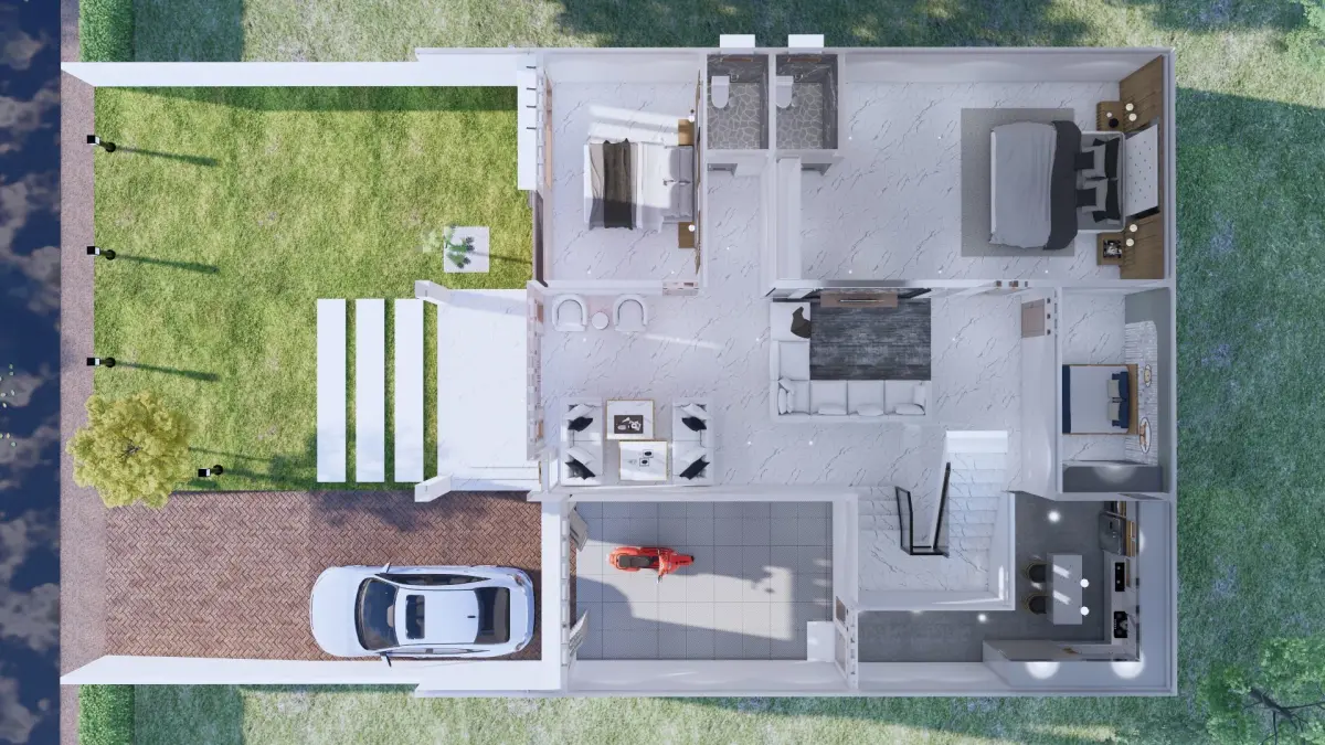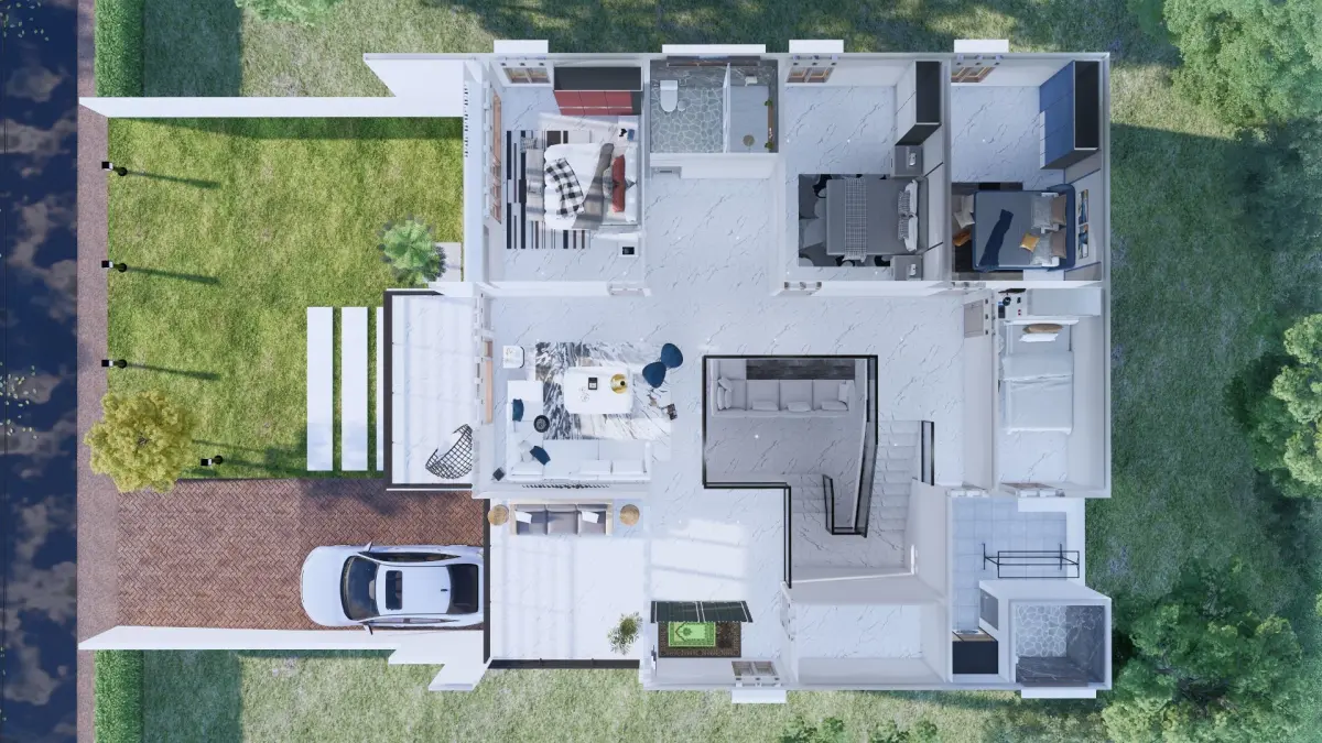 Complete Design Minimalist House 2 Floors full furniture and interiorgarage designbedroom designguestroom designkitchen room designbathroom designarchitexturefull lightingfull texture
