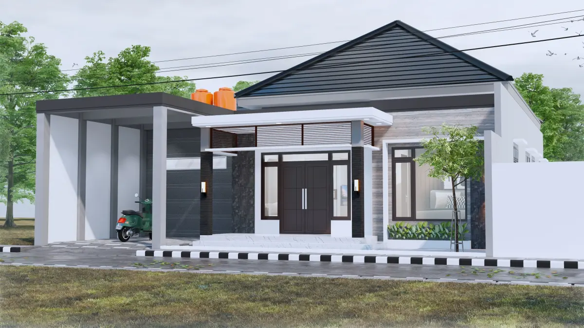 Minimalist Modern House one floor Full Interior Complete Furnituregarage carportbedroom livingroomguestroom kitchen much furniturelightingtextureedit ableready to rendercad shop drawing measurement