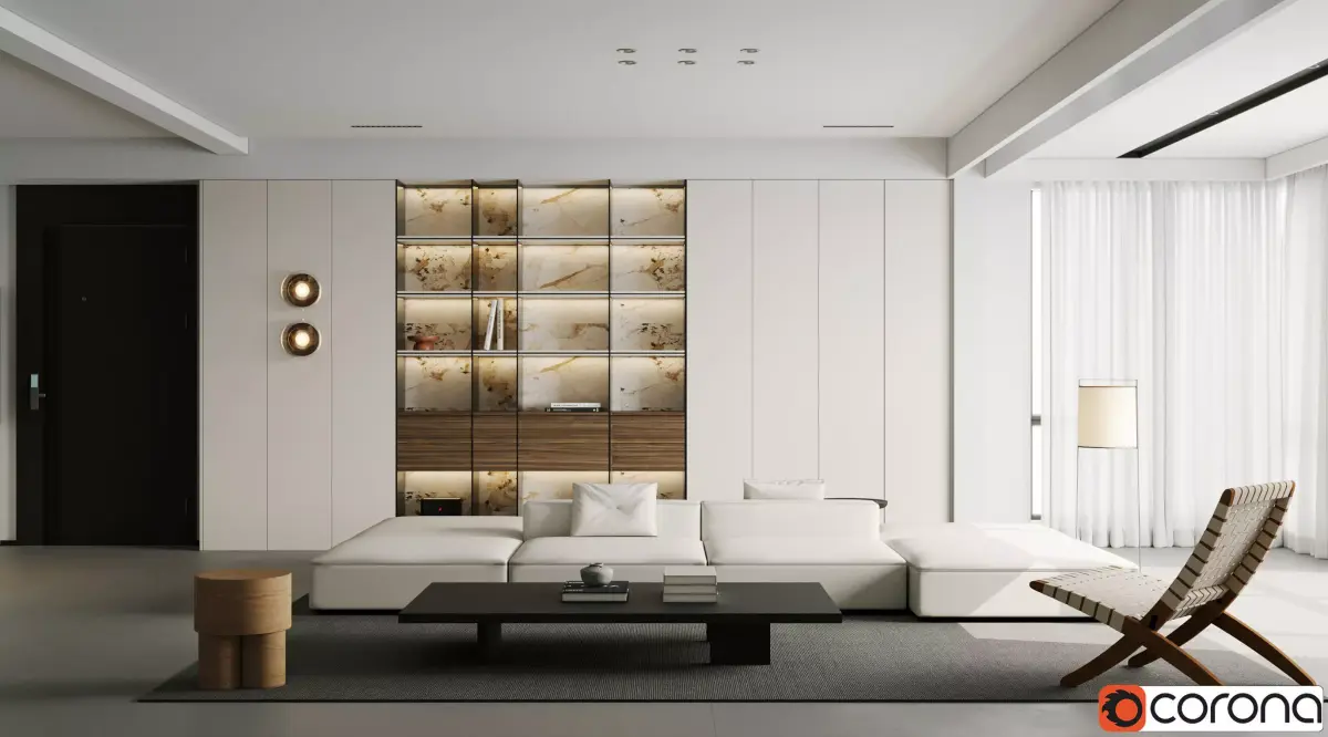 This premium 3D space was created in 3ds Max with support for both Corona 10.2 and V-Ray 6.2, ensuring realistic results for architectural visualization, product showcase, and interior design presentations.